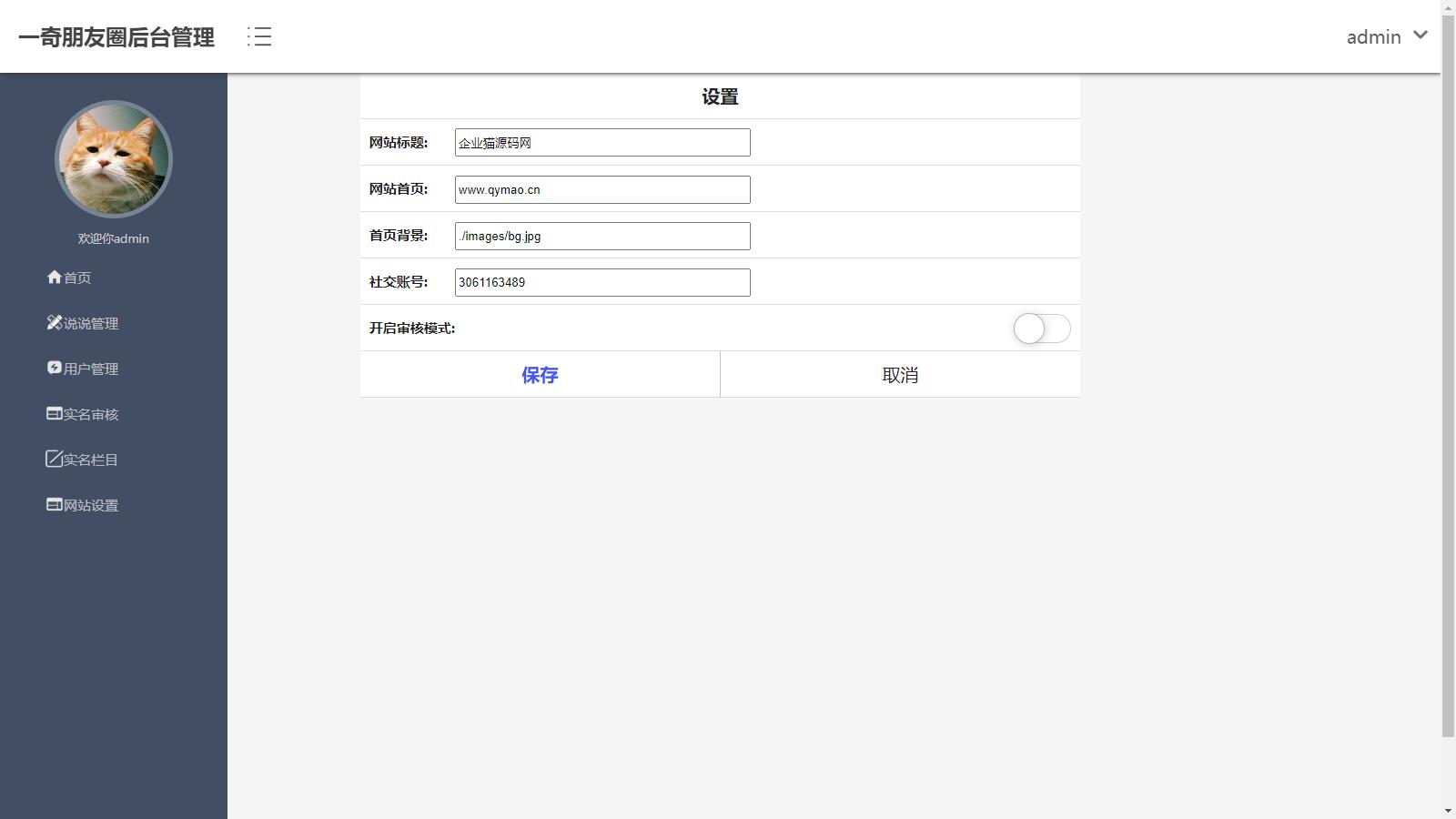 4.网站设置,可设置是否开启审核模式,网站标题等信息设置。