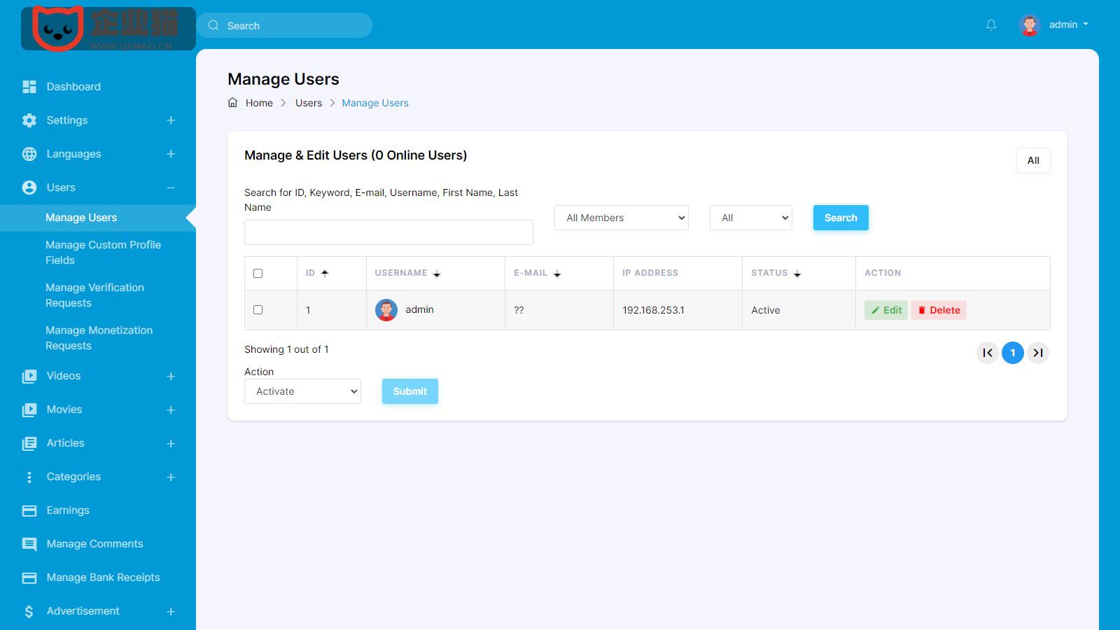 PlayTube是一个视频分享程序,它能快速的建立一个视频上传、导入、分享的网站, 具有多语言、用户管理、广告管理、视频上传、从youtube和vime等网站导入视频等功能。 本次发布的是2.0.2版本。企业猫搭建了下,发现是英文版的,不过可在后台有替换的地方。