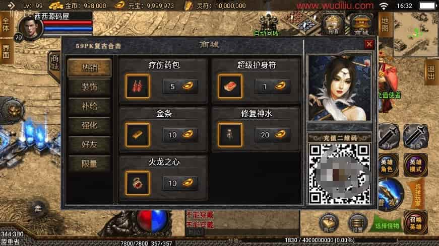 源码仅供学习研究之用,请勿商用或者其他违法用途,产生其他后果与本站无关, 搬运的其他精品游戏论坛的源码,企业猫不懂游戏 这个版本暴击属性有%5-%10-%15这三种属性的,因为是合击的,所以前三套分别是星王、王者、降龙, 然后后面是带暴击属性的各种装备,这个你们从手动回收NPC里面就可以看到。版本的地图非常多, 全部加起来估计等有30张以上,怪物和装备都有一些新的,其他的方面也没有什么特别要交代的, 喜欢的自行测试