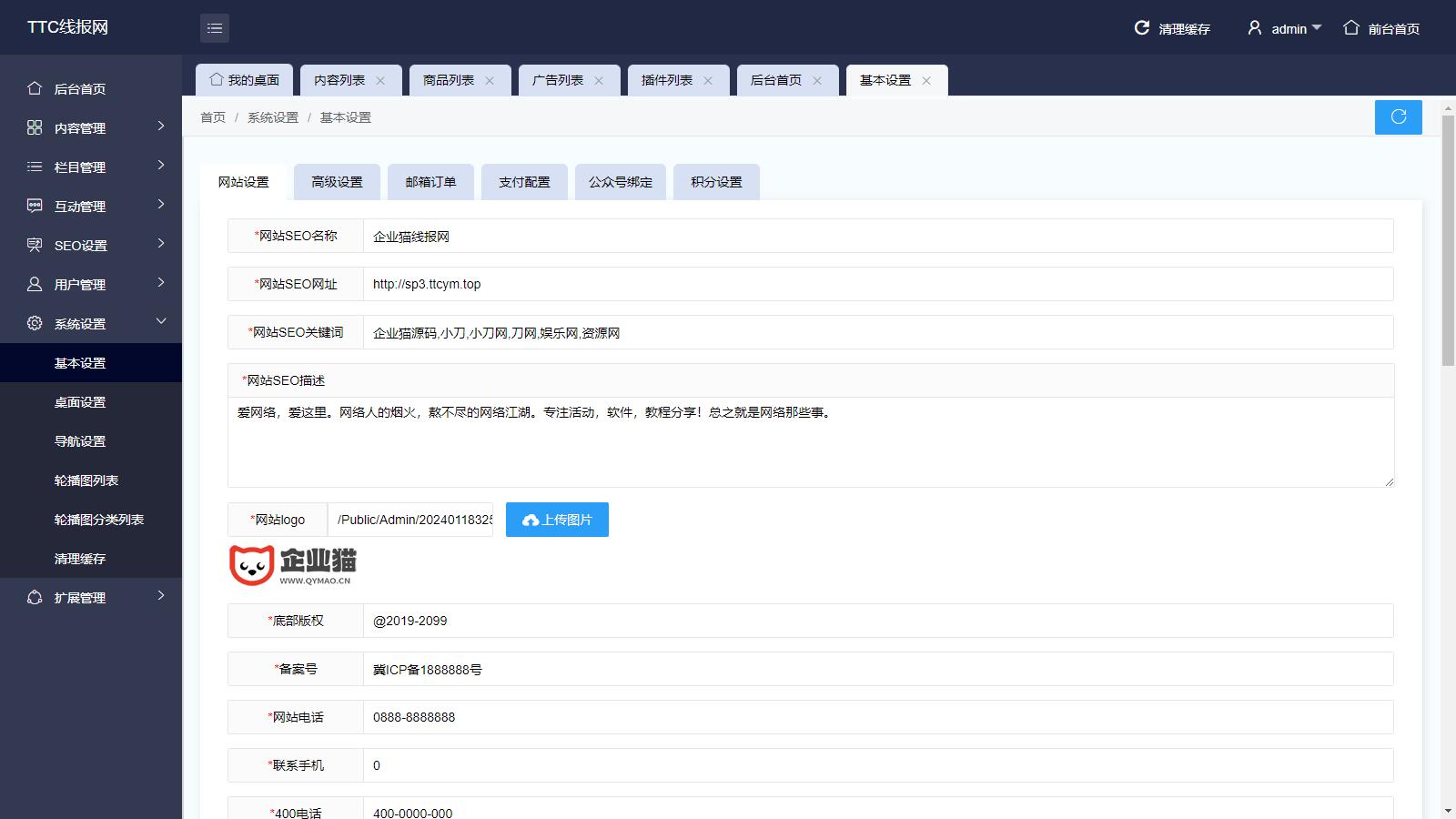 企业猫亲测后台源码截图: