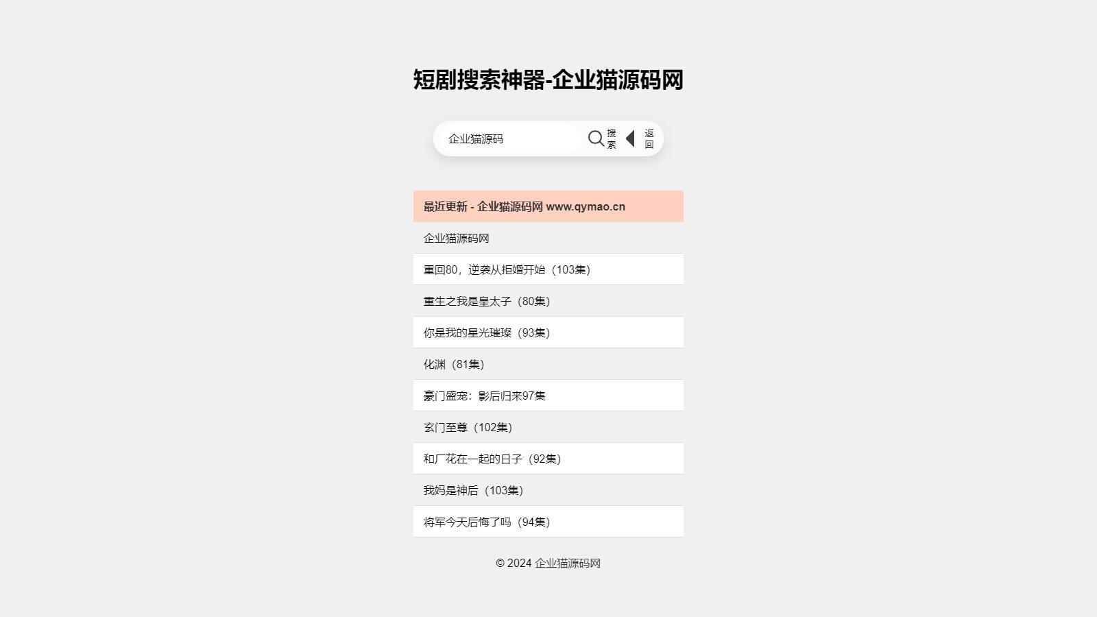 搜索神器源码,自带本地数据库 500+ 数据,共有 6000+ 短剧视频,与短剧猫一样。