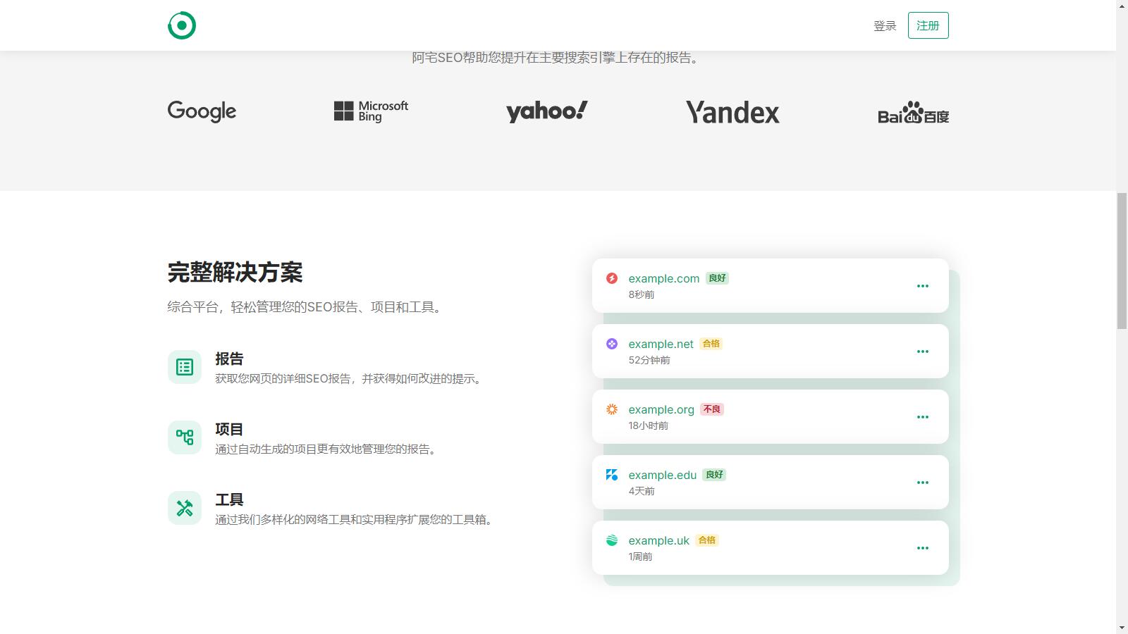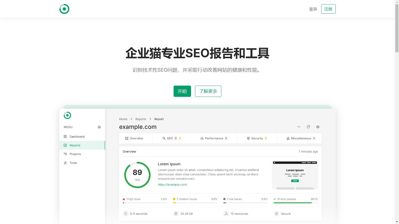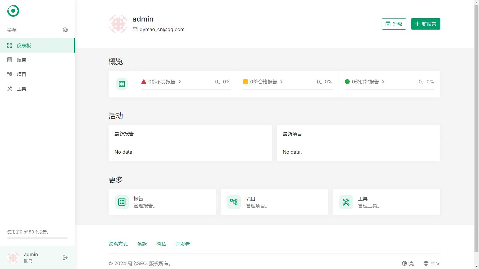 轻量SEO分析报告程序网站已开心去授权,可以让你生成有洞察力的、 简洁的、易于理解的SEO报告,帮助你的网页排名和表现更好 企业猫简单的搭建了下,发现有几个工具打开提示404,但看tool文件夹里有相关页面的php文件, 感觉应该是我没搭建好导致的,感兴趣的自己研究下吧