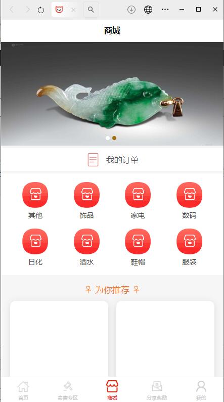 挂售转卖竞拍商城系统源码/竞拍系统/转拍闪拍系统/后端PHP+前端UNiapp源码 亲测可用 1、后台管理:系统管理员通过后台可以轻松添加商品进行挂单。 这包括商品的详细信息,如名称、描述、价格、库存等。 商品展示:挂单后的商品会在商城前端进行展示,供用户浏览和竞拍。 2. 场次设置 时间规划:管理员可以规划并设置竞拍的场次以及每个场次的开始时间。 场次可以是定期举行的,也可以是根据特殊活动或节假日进行设置的。 场次公告:用户可以在商城前端查看当前和即将开始的竞拍场次信息。 3. 用户抢单 竞拍规则:用户可以在竞拍开始后参与竞拍,按照设定的加价幅度进行出价。 竞拍实时性:系统实时更新竞拍价格,确保所有用户都能看到新的竞拍情况。 4. 提货与转售 提货选项:竞拍成功后,用户可以选择直接提货,获得所竞拍的商品。 转售功能:用户也可以选择将竞拍获得的商品进行转售,按照后台设置的加价百分比进行定价。 转售规则:转售的商品需要支付一定的手续费,手续费可以通过余额、 支付宝APP支付、支付宝H5支付或微信APP支付等方式进行支付。 5. 寄售加价与手续费 加价规则:用户寄售商品时,需按照后台设置的加价百分比进行定价,确保商品在转售时具有一定的利润空间。 手续费支付:用户在进行转售时需要支付一定的手续费,这可以通过多种支付方式完成,确保支付的便捷性和安全性。 6. 积分系统与积分商城 积分获取:用户提货时可以获得商品相应价值的积分,这些积分可以在积分商城中兑换商品或服务。 积分商城:积分商城提供多种商品和服务供用户选择,用户可以根据自己的积分余额进行兑换。 通过这套竞拍商城系统,用户可以享受到丰富的竞拍体验,同时也可以根据自己的需求选择提货或转售商品, 实现资产的增值。管理员则可以通过后台系统轻松管理商品和场次,确保竞拍的顺利进行。