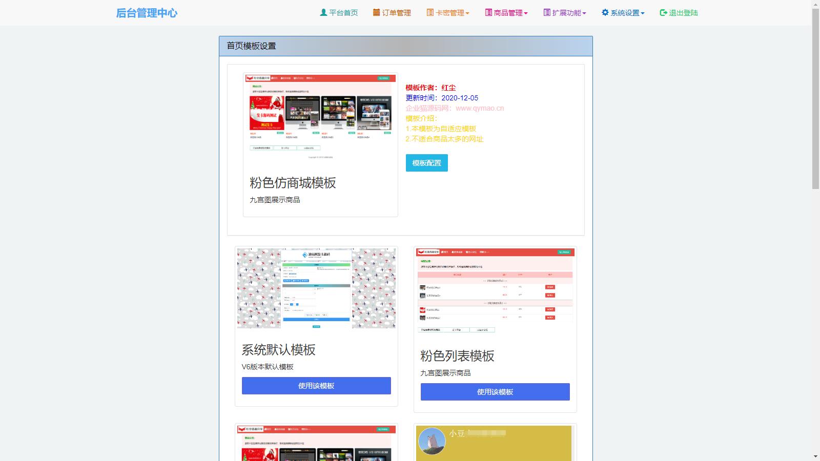 一款全开源非常好看的发卡源码。轻量级自适应个人自助发卡简介, 这是一款二次开发的发卡平台源码修复原版bug,删除无用的代码。所有文件全部解密, 只保留后台版权信息内容。大家放心使用,可以用于商业运营。轻量级自适应个人自助发卡。 去除多余的文件及代码 后台添加新功能及快速邮件配置 更新删除原来的发件程序 可以修改前台文件信息 重新规划文件布局等等 已更新到8个前台模版 支持码支付和自定义易支付接口 复发到邮箱功能图片不显示及部分文字乱码