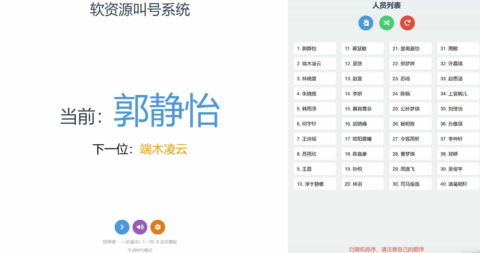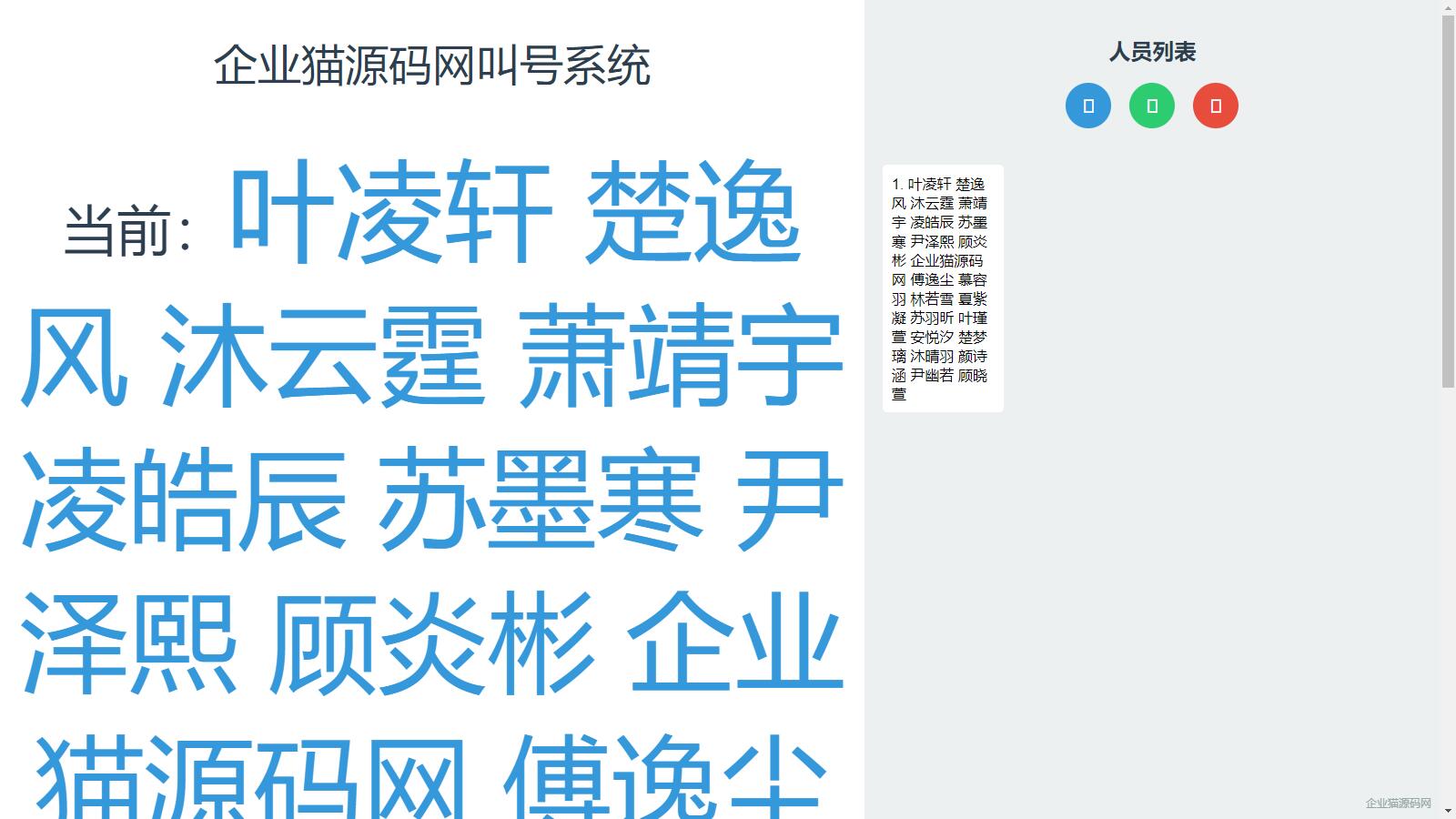 这个叫号系统的过程是这样的 接了一个任务,某学校要对学生进行逐个面试,希望能有类似医院门诊那种叫号系统。 条件:首先说硬件,就是教室里边一台笔记本电脑,同屏到教室外面的电视机。 需求:软件需求是可以导入学生名单,能对学生进行随机排序(相当于抽签), 然后就是开始叫号,屏幕显示学生姓名。需要播放学生的姓名,省得教师出去喊学生 企业猫搭建后看了下,发现我所在地区打不开代码调用的js和图标文件, 应该是这个原因导致学生名称都合并一块了。具体可看图 所以免费放出来了,注册后即可下载本源码