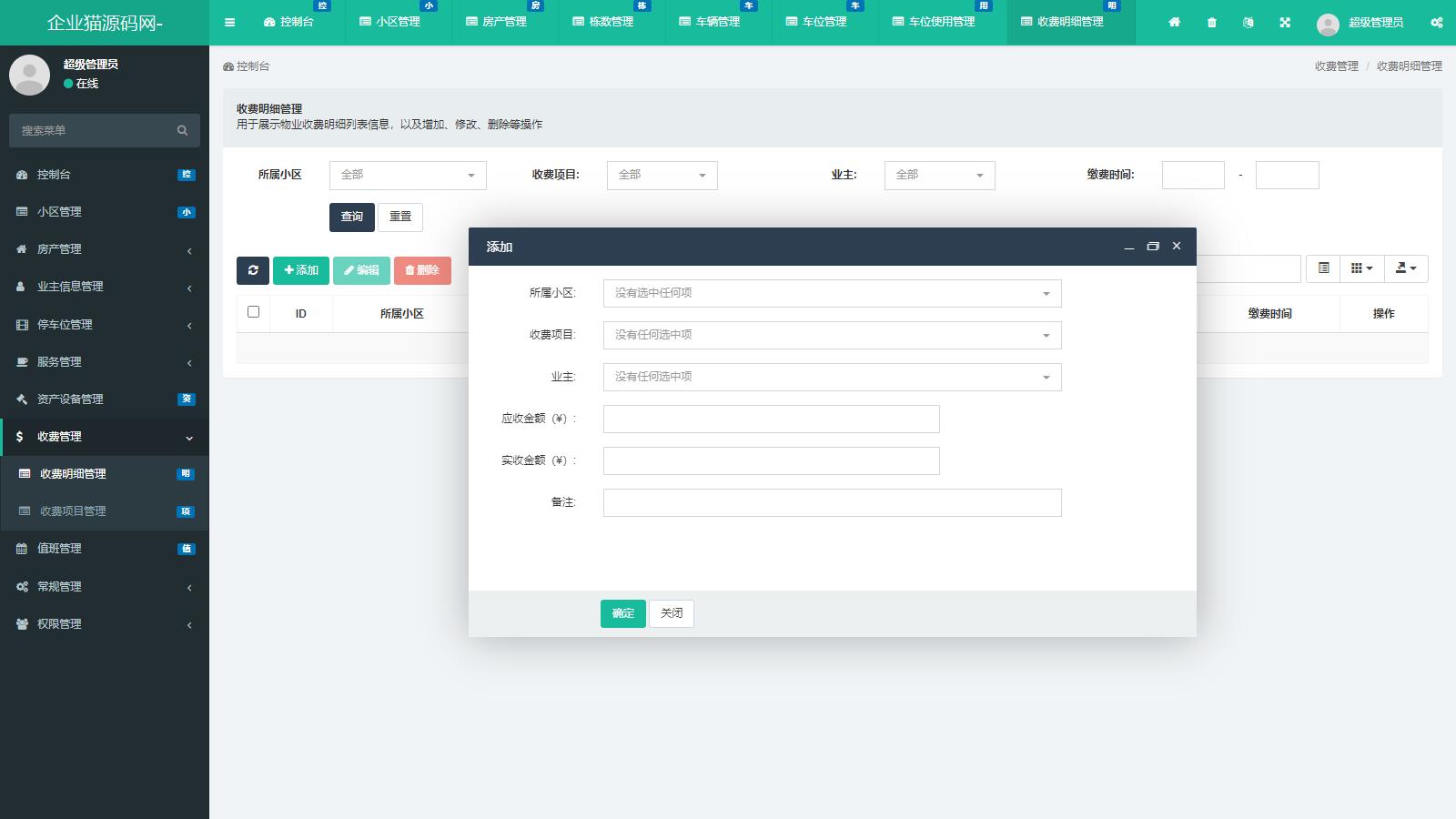 本系统采用先进的PHP技术,并全面支持手机端访问,基于thinkphp5框架构建。 它集成了多种功能模块,旨在为用户提供高效、便捷的物业管理服务。 主要功能模块包括: 统计分析:提供详尽的数据分析功能,帮助用户全面了解小区运营状况。 小区管理:方便用户对小区进行全方位的管理,包括小区信息、公告发布等。 房产信息管理:详细记录房产信息,支持查询、修改和删除等操作。 业主信息管理:全面管理业主信息,确保信息准确无误,便于联系与沟通。 停车位管理:有效管理小区停车位,提高停车效率,减少纠纷。 服务管理:提供物业服务管理功能,包括服务预约、投诉处理等。 资产设备管理:对小区内的资产设备进行登记、维护和管理,确保设备正常运行。 收费管理:支持多种收费方式,方便用户进行物业费用的缴纳和管理。 值班管理:提供值班人员排班、考勤等功能,确保小区安全有序。 权限管理:严格管理用户权限,确保系统安全稳定。 系统配置:支持对系统进行个性化配置,满足用户的不同需求。 小白提醒:本系统源码需进行架设后才能使用,您可以在本地电脑以及局域网内运行该系统。