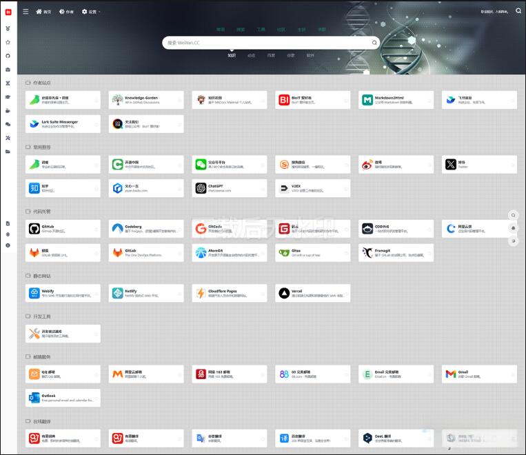 本项目是基于纯静态的网址导航网站 webstack.cc 制作的 Hugo 主题,是一个基于 Hugo 的静态响应式网址导航主题。 这是 Hugo 版 WebStack 主题。可以借助下面的平台直接托管部署,无需服务器。 总体说一下特点: 采用了一直以来最喜欢的 Hugo 部署方式,方便高效。 主要的配置信息都集成到了 config.toml,一键完成各种自定义的配置。 导航的各个信息都集成在 data/webstack.yml 文件中,方便后续增删改动。 – taxonomy: 科研办公 icon: fas fa-flask fa-lg list: – term: 生物信息 links: – title: NCBI logo: ncbi.jpg url: https://www.ncbi.nlm.nih.gov/ description: National Center for Biotechnology Information. – title: Bioconda logo: bioconda.jpg url: https://anaconda.org/bioconda/ description: “Bioconda :: Anaconda.org.” – term: 云服务器 links: – title: 阿里云 logo: 阿里云.jpg url: https://www.aliyun.com/ description: 上云就上阿里云。 – title: 腾讯云 logo: 腾讯云.jpg url: https://cloud.tencent.com/ description: 产业智变,云启未来。 做了手机电脑自适应以及夜间模式。 增加了搜索功能,以及下拉的热词选项(基于百度 API)。 增加了一言、和风天气的 API