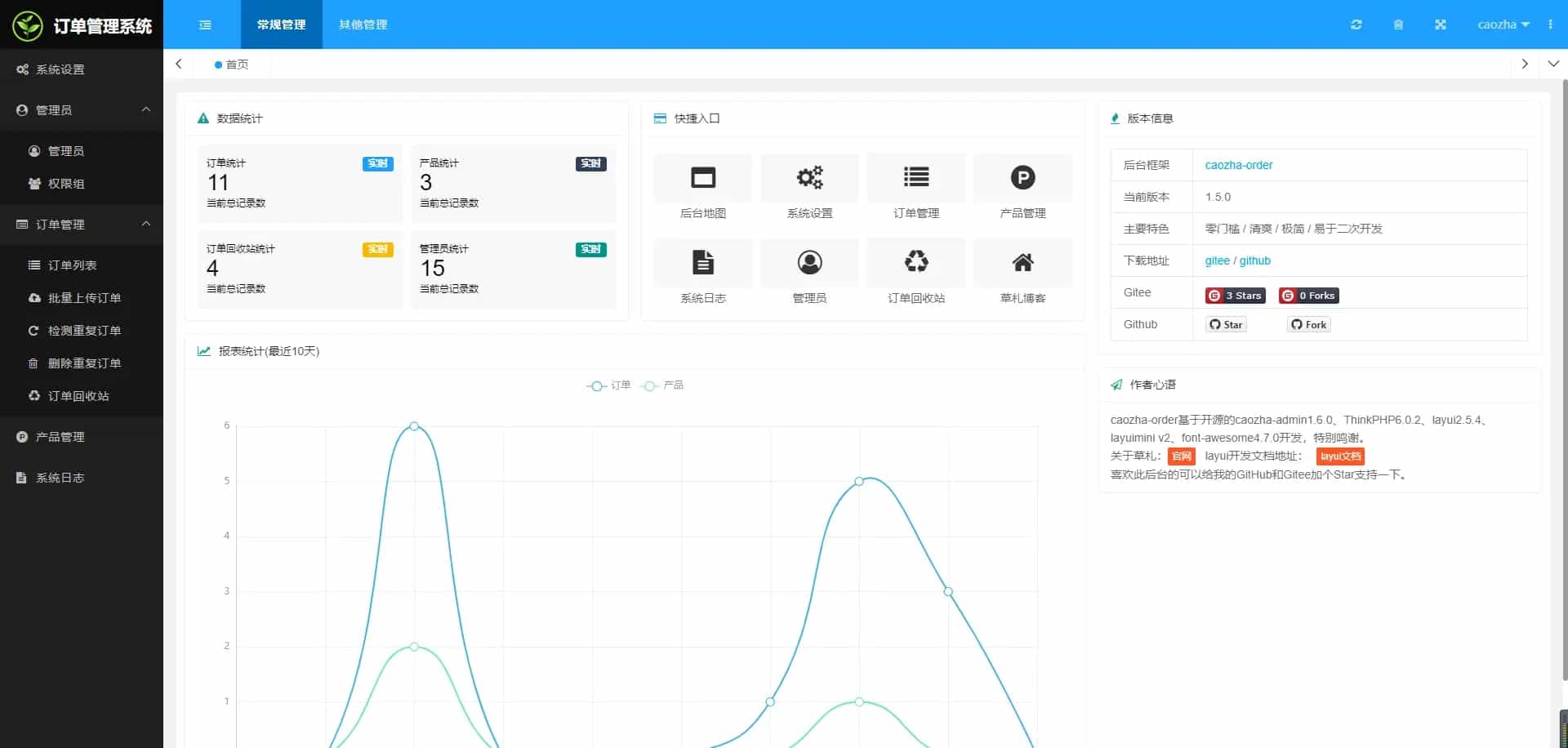 支持订单管理、订单回收站、产品管理、批量上传订单、批量导出订单(支持导出格式:.xls,.xlsx,.csv)、
