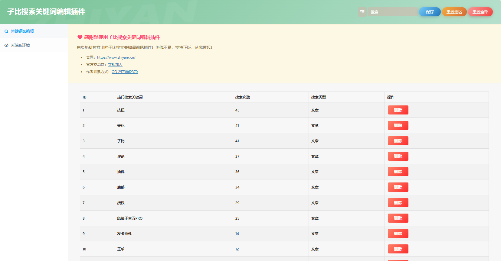 源码介绍: 本次介绍的是 子比搜索关键词编辑插件 可以有效的帮助站长清理 恶意搜索关键词 与无用搜索词 源码截图: 声明:本站所有文章,如无特殊说明或标注,均为本站原创发布。任何个人或组织,在未征得本站同意时,禁止复制、盗用、采集、发布本站内容到任何网站、书籍等各类媒体平台。如若本站内容侵犯了原著者的合法权益,可联系我们进行处理。