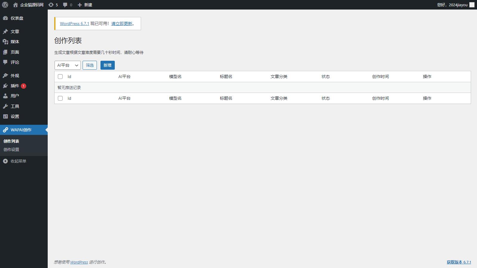 一款可以快速借助ChatGPT,快速生成大量原创有深度文章,快速丰富网站内容,新建文章标题跟分类后, 点击生成即可自动生成文章,生成后可以点击查看文章直达文章界面,分类可以设置不存在的,程序发现不存在会自动新建。