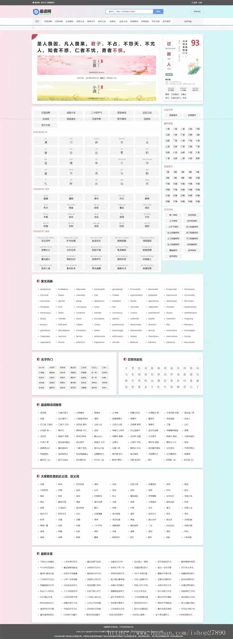 功能包含: 成语大全 二十四节气 英语单词 古诗词 近反义词 词语造句 汉语字典 英文缩写 百家姓 范文文库