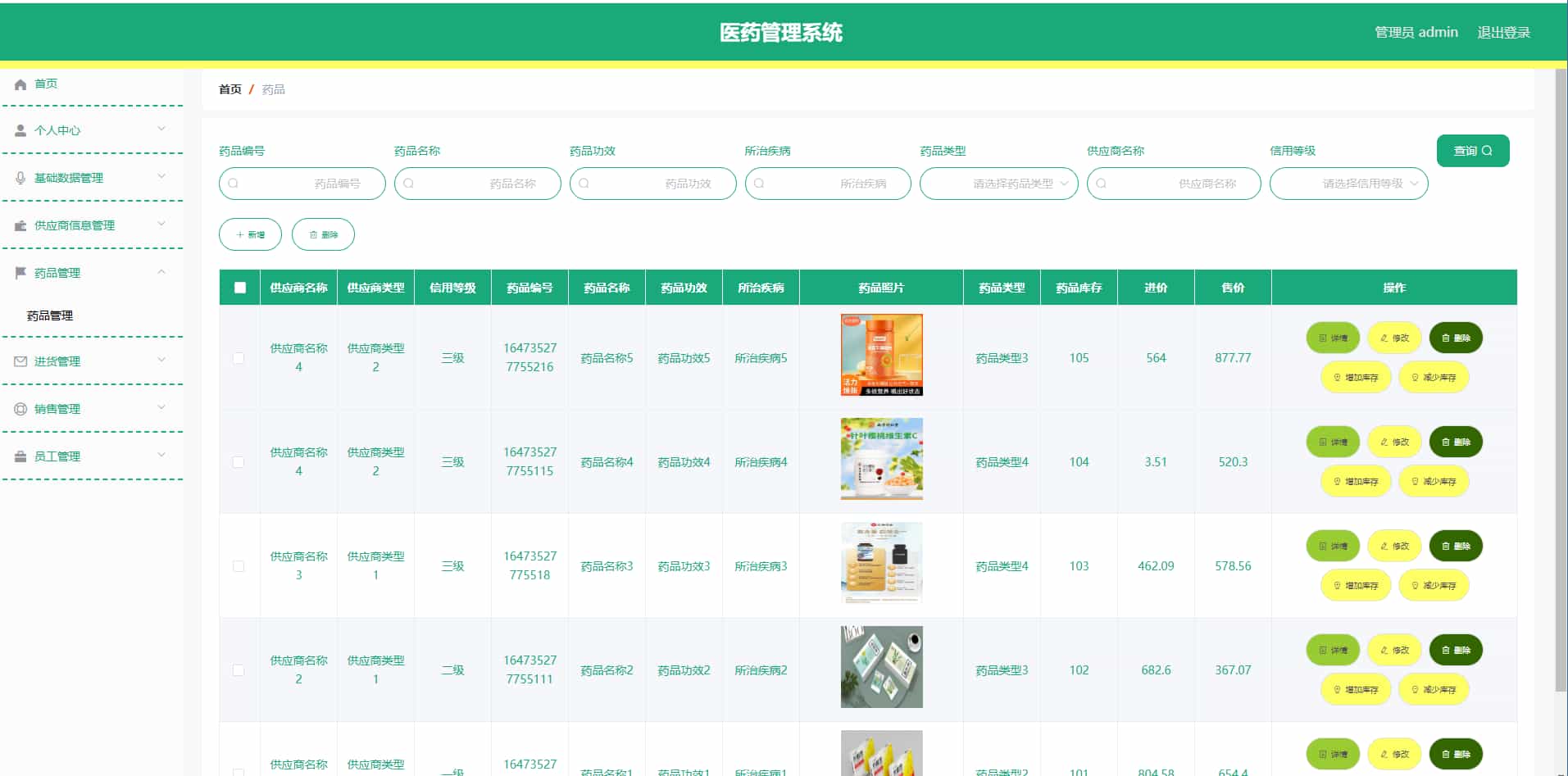 供应商的管理可以管理供应商的一些数据药品管理可以新增药品录入药品对药品的数据进行管理