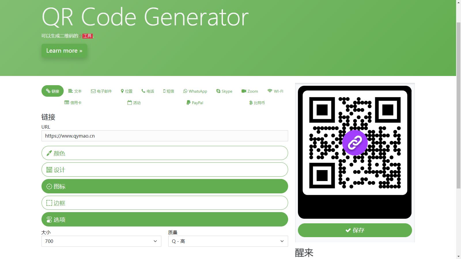 阿宅QR轻量二维码生成系统源码 基于PHP编写的二维码在线生成系统。只需点击几下就可以生成您的个人二维码!上传您的徽标, 选择自定义颜色,生成多种类型。选择一个图案并下载最终的qrcode。可用格式:.png,.svg