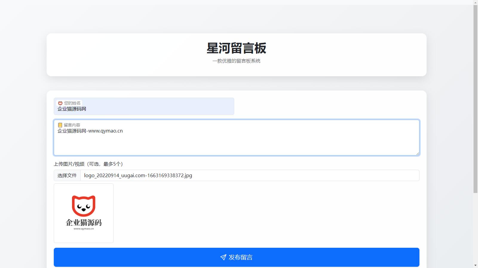 更新内容: 【新增功能】 新增支持上传视频 新增支持图片视频混合上传 新增支持后台审核时对上传的视频和图片进行预览 新增支持留言位置的显示(位置服务由 ip-api 提供) 新增支持设置每页留言显示数量 【优化修复】 优化后台登录界面 UI 顺路把更新日志界面优化了一下 优化留言审核统计卡片 UI 目前是发现了一个问题,有概率会出现页面 UI 加载失败的问题,我猜测可能是因为通过链接调用 bootstrap 的 css, 然后两个服务器之间某一个存在通信失败的问题导致的, 下一个版本我再想想怎么修复。不过目前这个问题只是短暂出现而已。