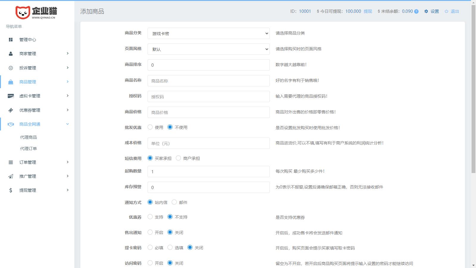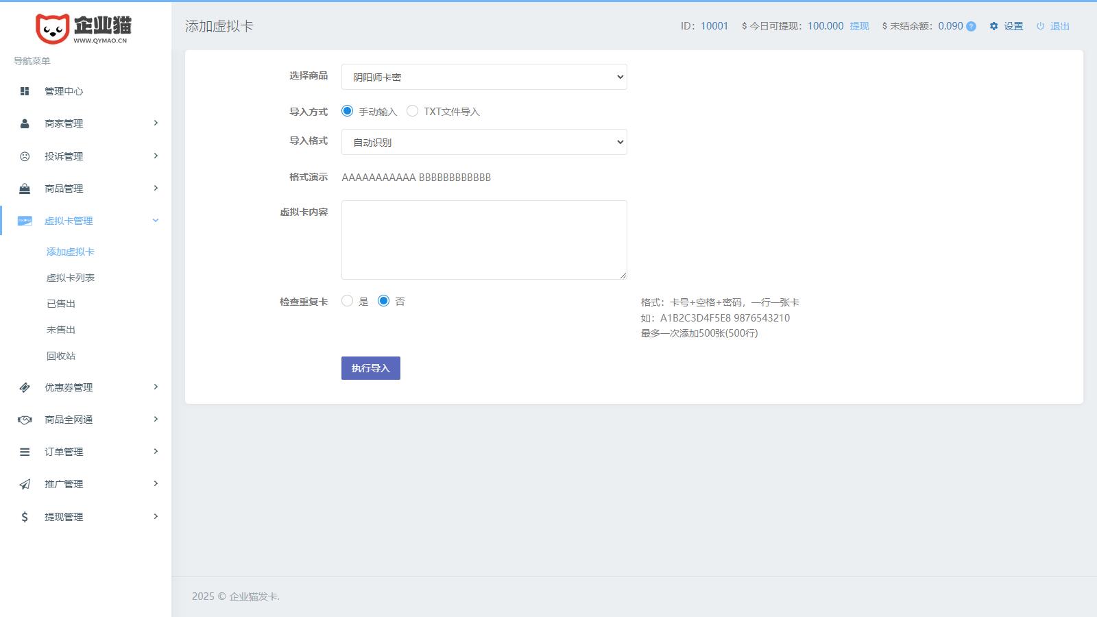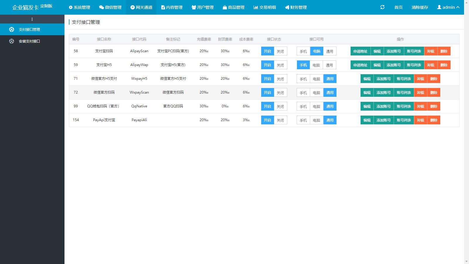 用户投稿的一套程序。说是最近其他源码网发的这套源码的开源版。 企业猫搭建了下,各个页面可正常打开,后台功能太多了,具体功能企业猫没测试。 已赠送该用户半年企业猫会员+半年71教程网会员,以下是搬运来的源码介绍 最新商业完整版企业自动发卡系统源码 代理分销 全新UI 多模板 完整教程 亲测完整可用 测试运行环境:Nginx + PHP7.2 + MySQL5.7,教程在压缩包里 这是之前购买的一套发卡系统,自己运营过,定制了模版, 二开了商品代理分销系统等等,完整无措,有需要的自行下载