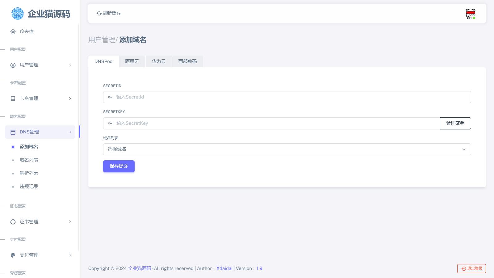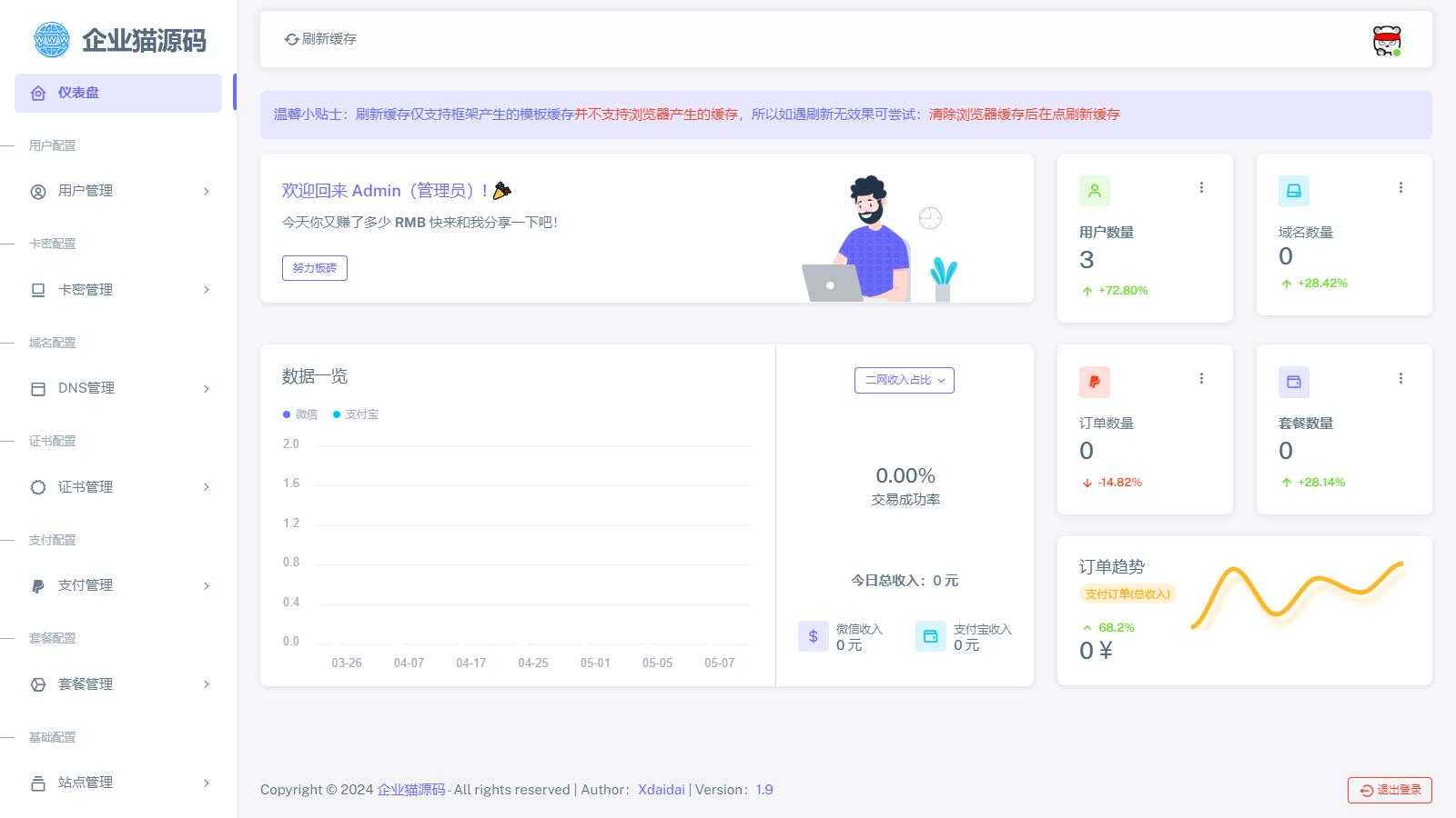 一、系统核心优势 ✅ 高性能架构:基于PHP8.1+Swoole扩展开发,支持10万+并发请求 ✅ 智能分发引擎:实时动态解析二级域名,支持自定义分发策略 ✅ 多租户支持:后台可管理多个主域名资源池,独立流量统计 ✅ 商业级安全:内置CC防御机制+SQL注入防护,保障分发业务稳定运行 二、系统功能亮点 🔥 可视化面板:实时监控域名分发状态与流量数据 🔥 智能缓存机制:采用Swoole协程加速,响应速度提升300% 🔥 API开放接口:支持与第三方CDN/云平台快速对接 🔥 多模板支持:内置企业版/个人版多套前端主题