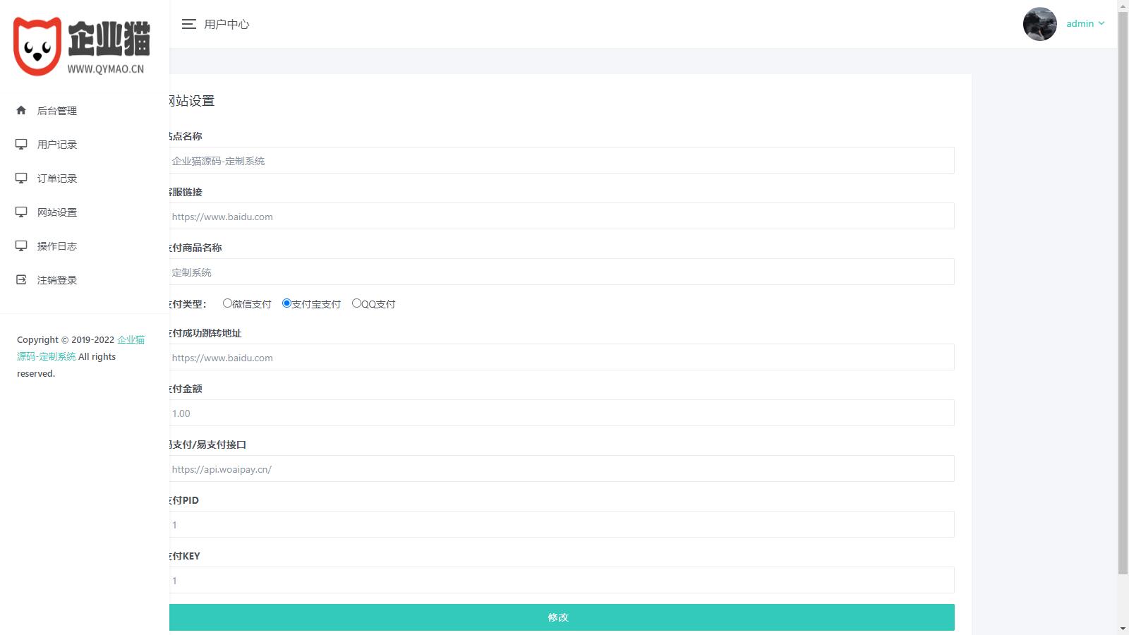 企业猫搭建了下,发现这个源码是支付完成跳转到后台自定义设置的链接,也可以做其他行业