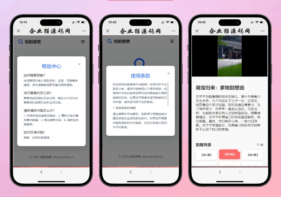 短剧搜索是一个根据 AI 生成的一个简单的在线短剧搜索和播放网站,由四个核心文件组成:index.html、search.php、list.php 和 play.php。它注重隐私保护,仅依赖浏览器历史记录,不保存任何服务器端或第三方的搜索记录。