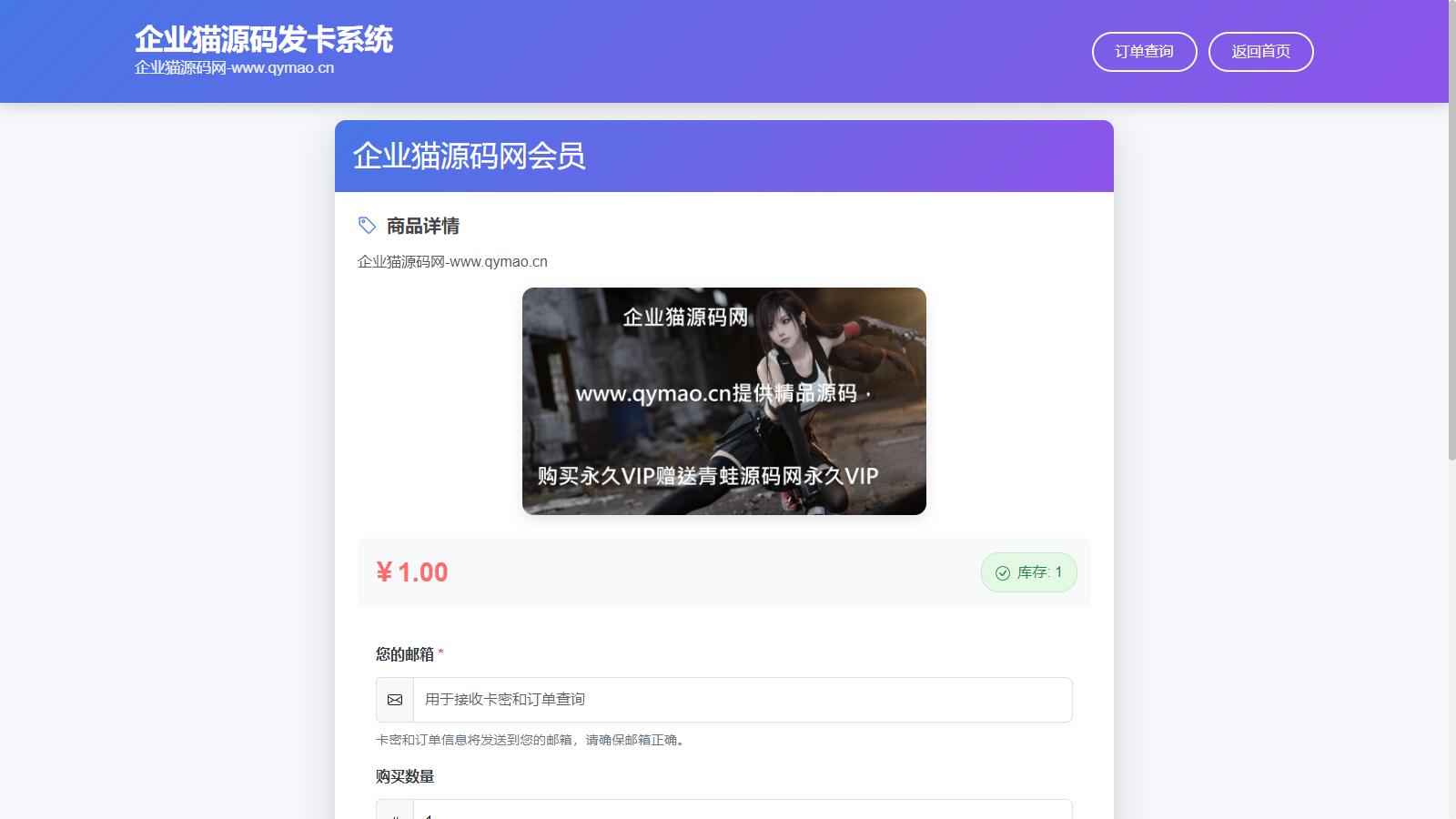自动发货:订单支付完成后自动发送卡密到用户邮箱