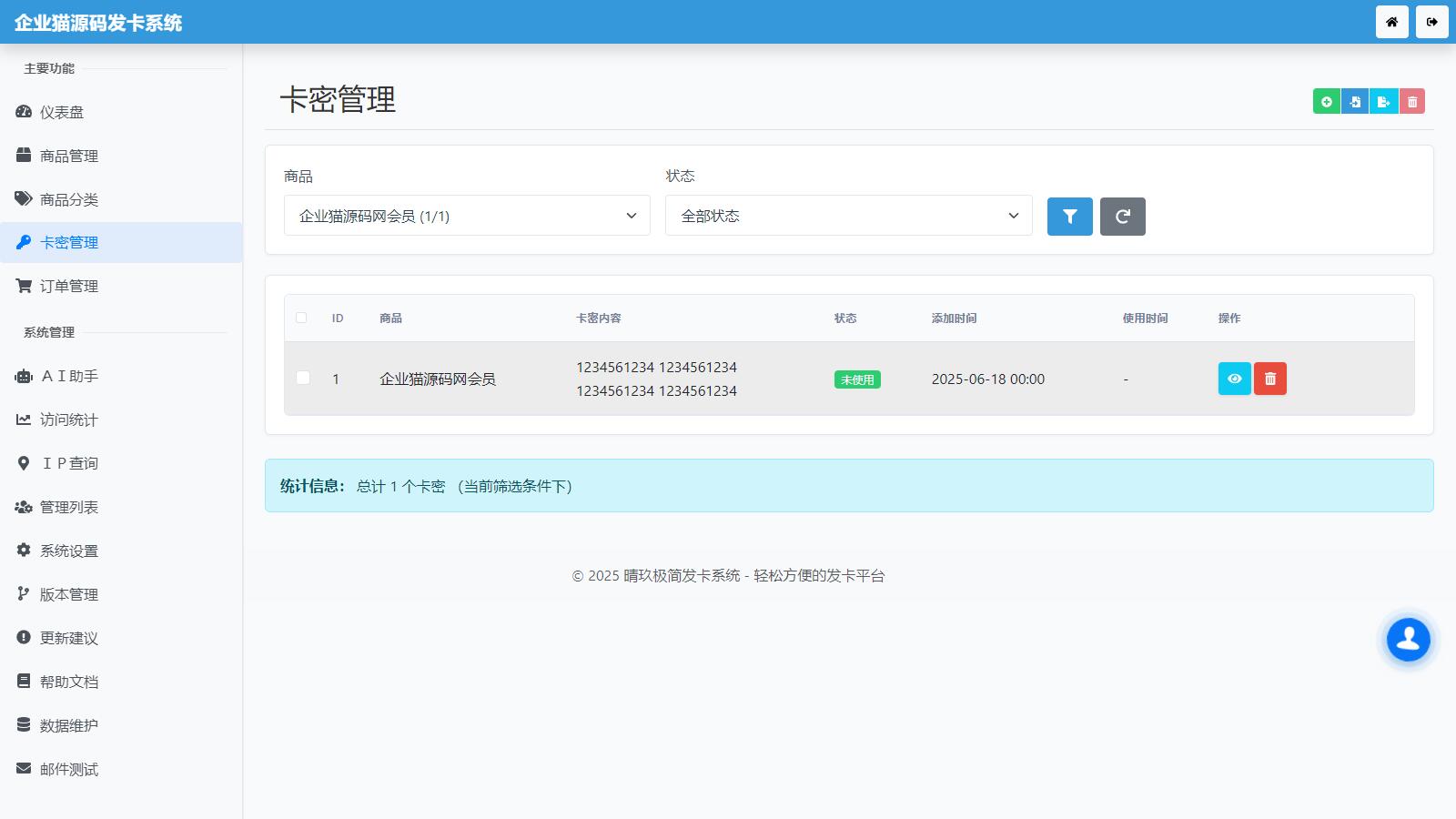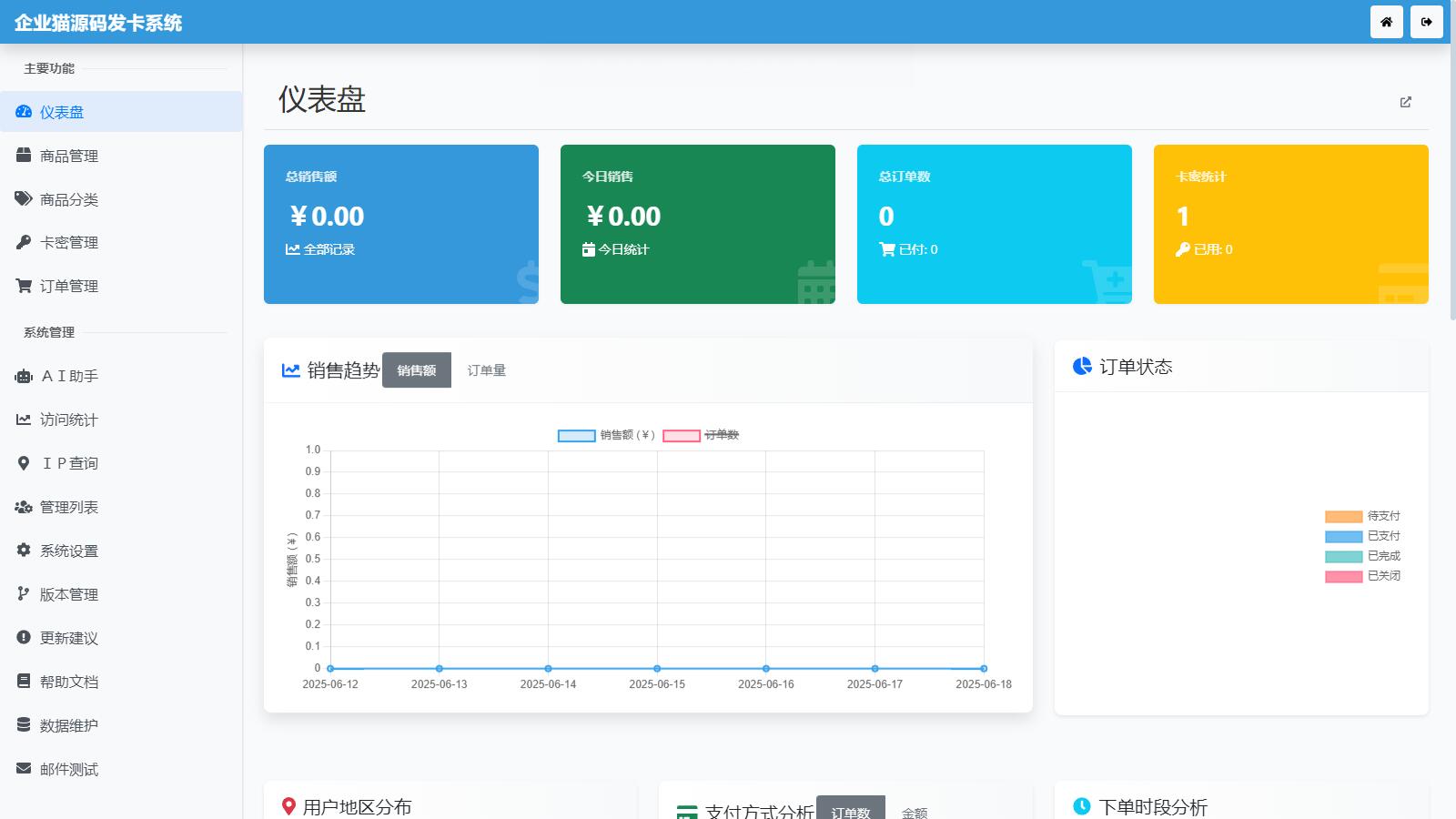管理后台:商品管理、卡密管理、订单管理、系统设置等一应俱全