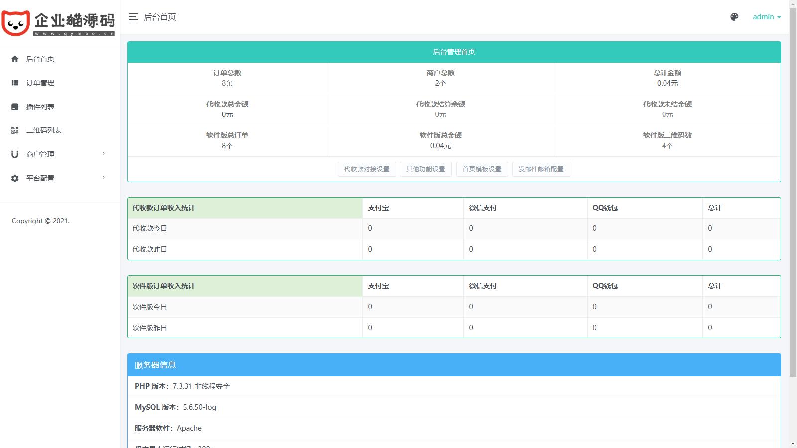 企业猫搭建了下,可以正常搭建出来,各页面均可正常打开,也带了mt管理器,技术有限,仅测试了下搭建,具体功能未测试