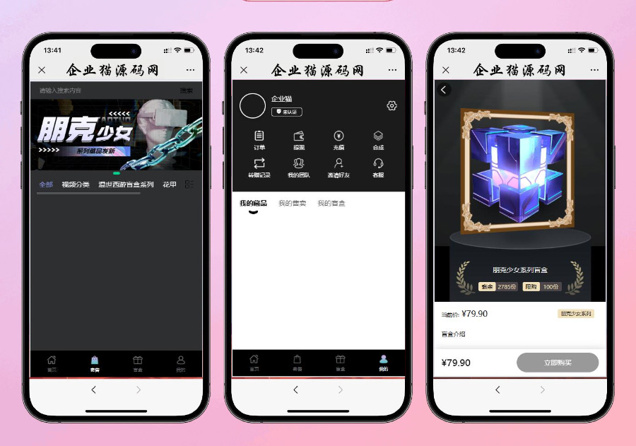 5.盲盒:购买盲盒随机抽取藏品,后台可设置盲盒中的奖品