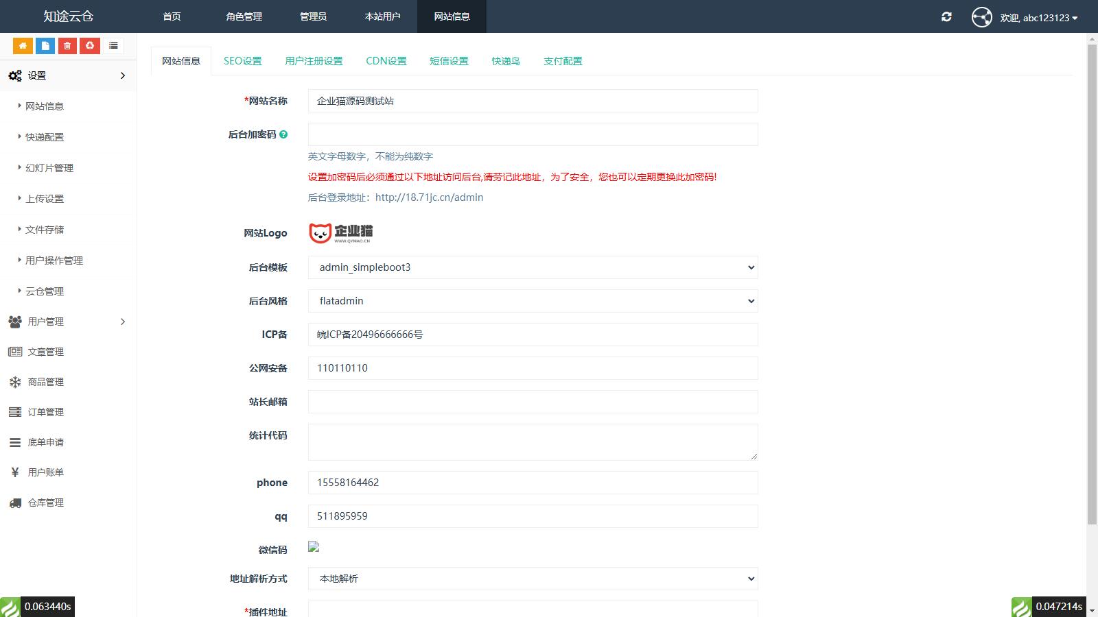 企业猫搭建了下,前台后台均可正常打开,UI很漂亮。