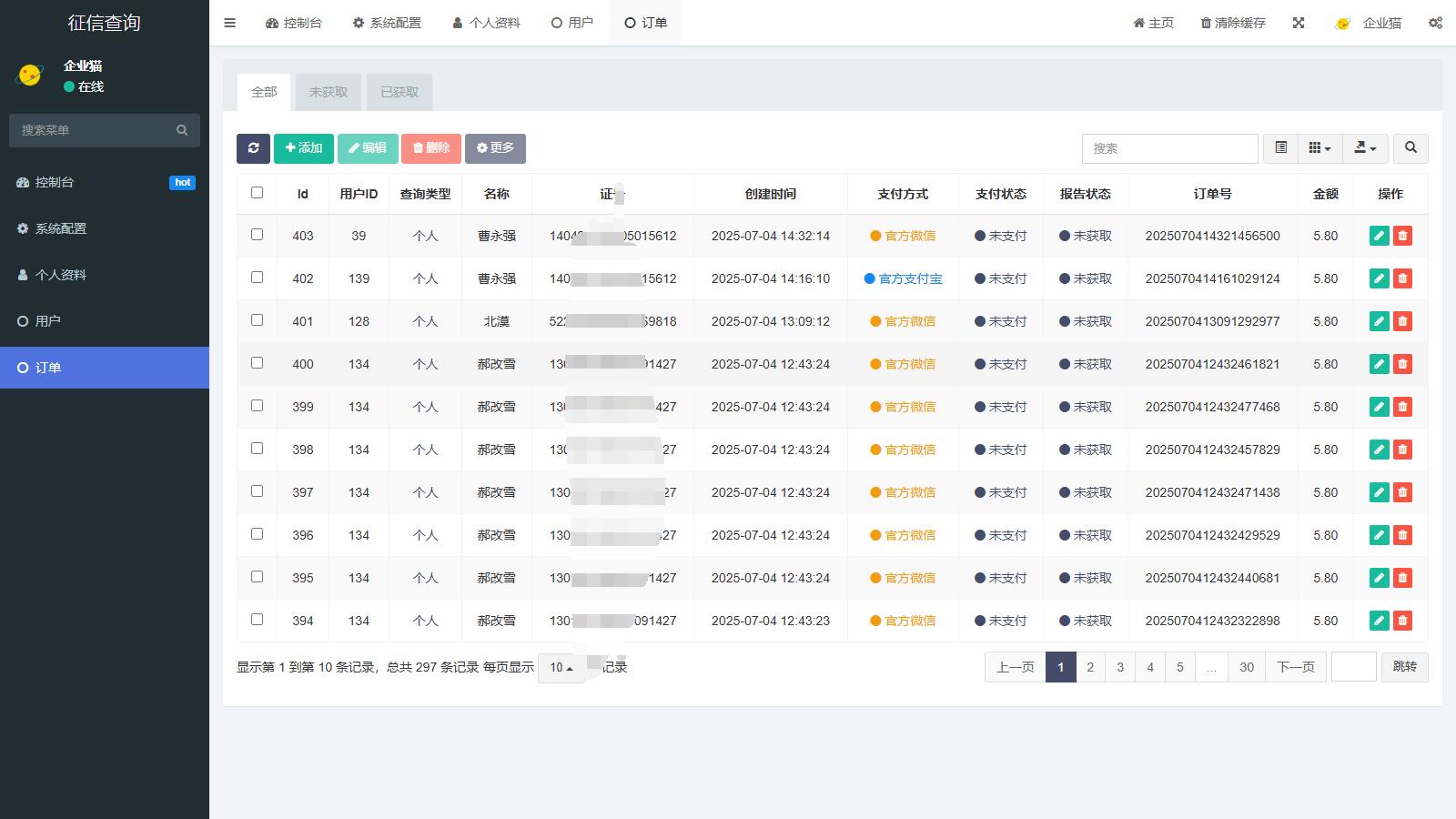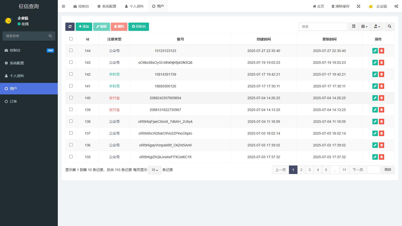 由于短信宝的短信模板一直没申请通过,api接口价格比较贵。具体功能企业猫未能测试。