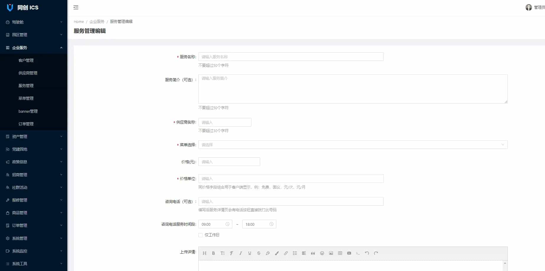 基于园区业务,深度挖掘流程与系统的关键结合点,发挥互联网的优势,系统主要实现园区的资产管理,企业服务及档案管理,园区的活动及商城的搭建。 智慧园区是用信息技术为手段、智慧应用为支撑,全面整合园区内外的资源,使园区管理服务等更高效便捷,实现基础设施网络化、管理信息化、功能服务精准化和产业发展智能化, 全面提升园区信息化管理水平。打造城市代言,智慧城市缩影、打造产业基地,谋求跨越发展、传感网、物联网等战略性新兴技术的示范应用;向规模化、集群化、现代化升级、资源集中化,成本优势,规模优势,产业链协同、物流配套畅通。(请敬请期待,正在开发!!)