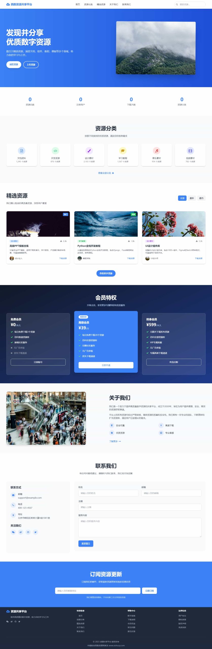 这个资源分享网站模板是一个功能完整、设计现代的单页网站,非常适合快速搭建资源分享平台。