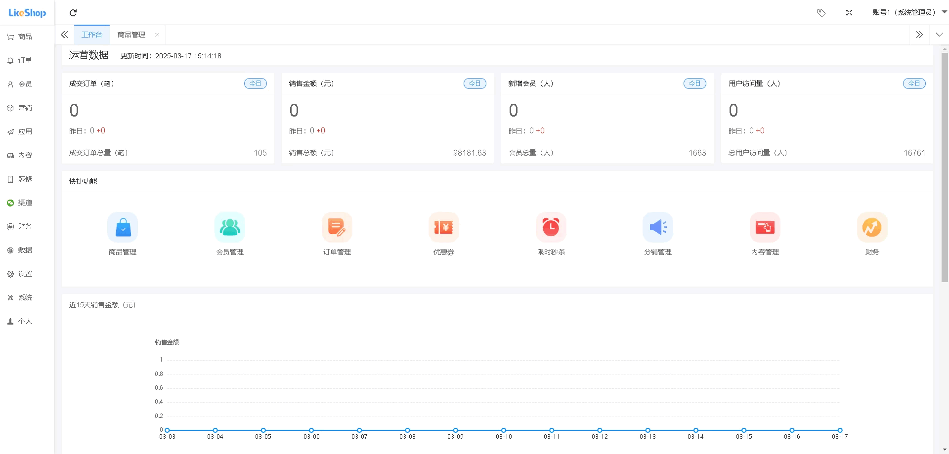 演示网址:https://php-b2c-demo.likeshop.cn/admin