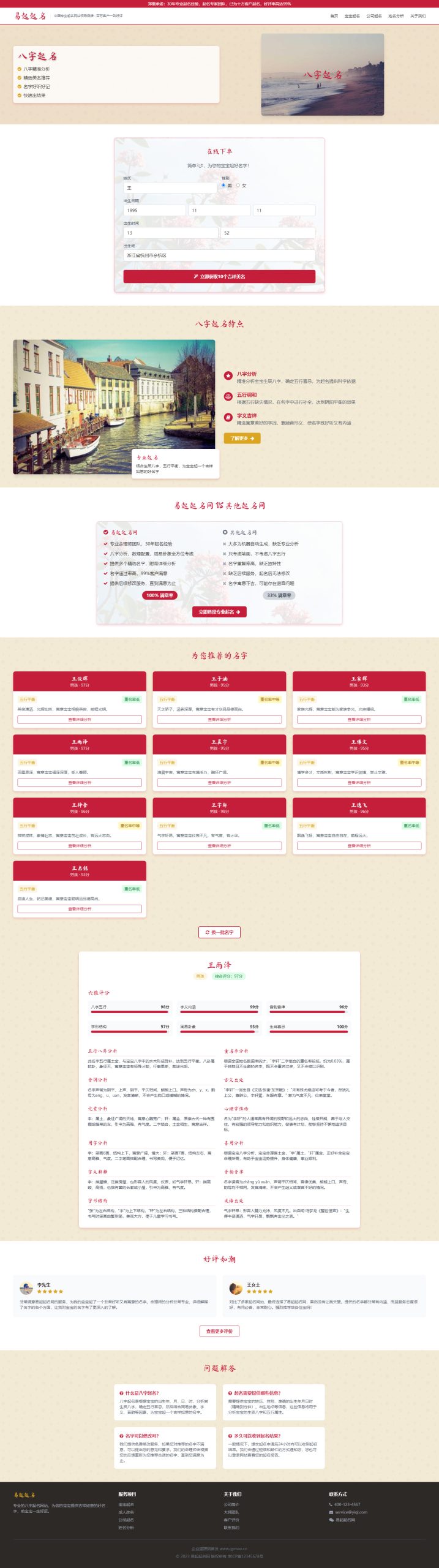 这个姓名生成器网页采用了传统中国风格设计,主要特点包括: