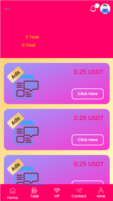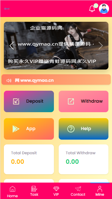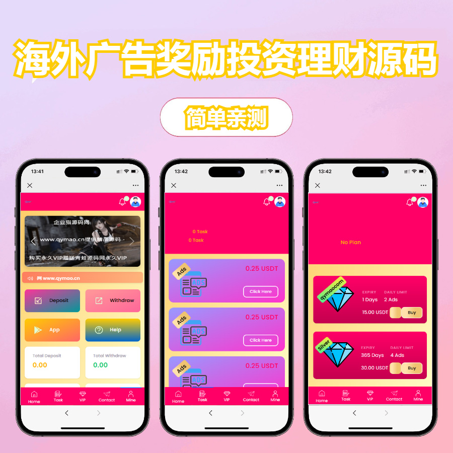 投资理财新模式,通过观看广告获取佣金收益,观看广告次数是根据VIP等级来的,等级越高价格越贵,看广告的次数也就越多