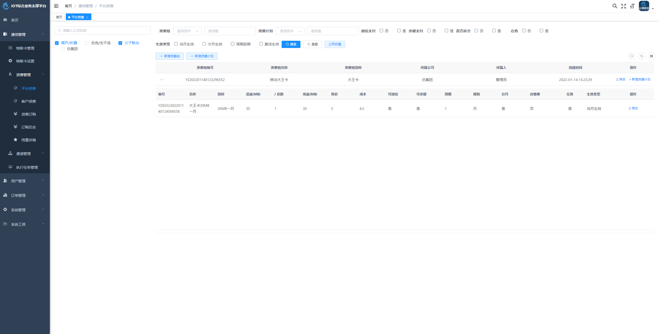 管理物联卡 用量记录、套餐封装、在线信息获取、智能诊断、分组备注、企业代理管理、预存、充值、返利 等。