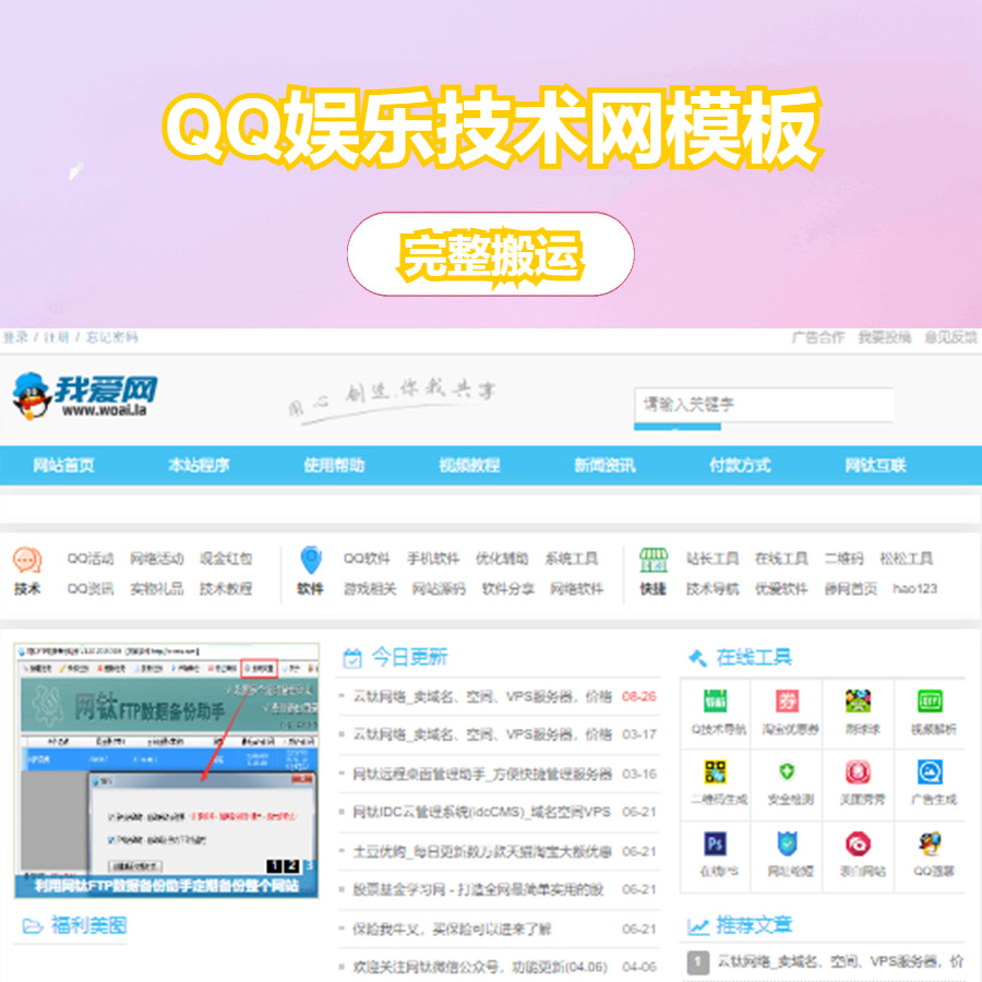 网钛 CMS 我爱网 QQ 娱乐技术网源码,基于网钛 V7.36 版修复,下载后上传 php 主机安装即可使用,无任何后门