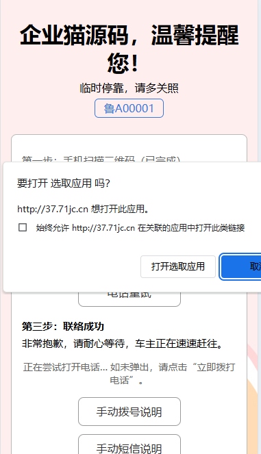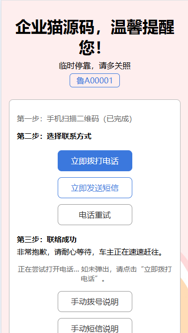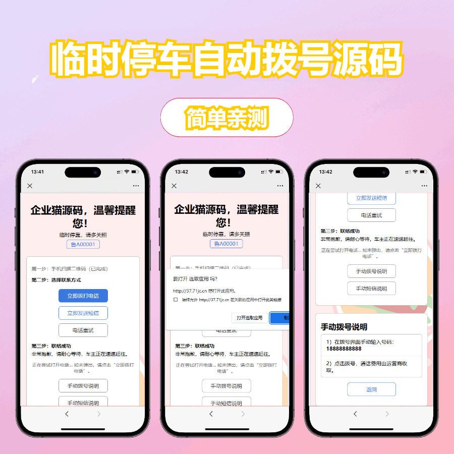 如想扫码后自动弹短信,在链接后加 ?auto=sms;想自动弹电话,加 ?auto=call。