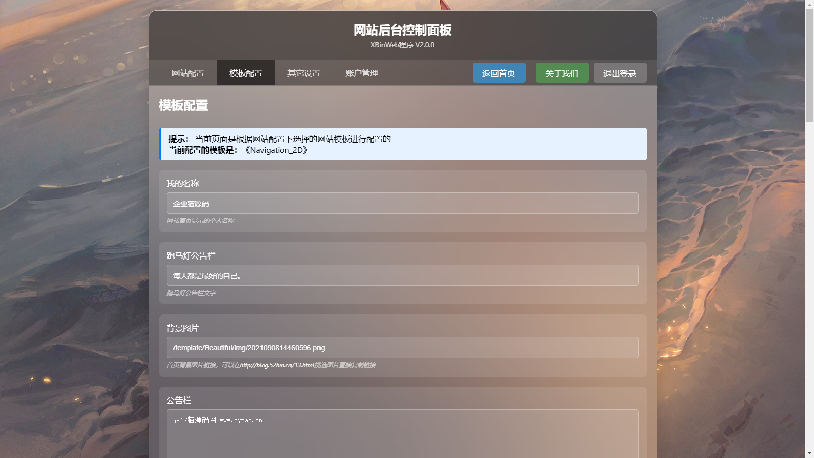 灵活后台:包含后台管理面板,支持动态切换首页模板,配置网站参数