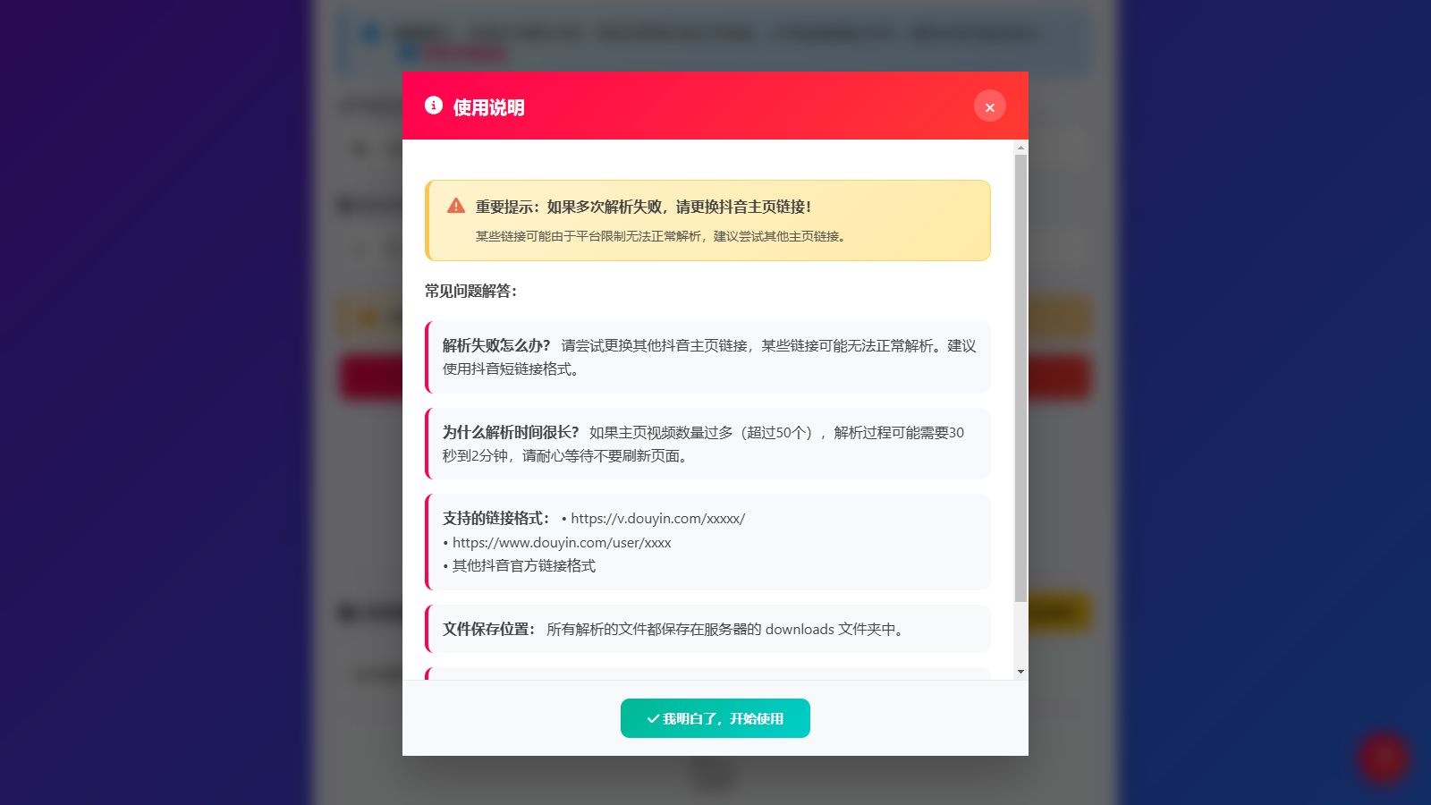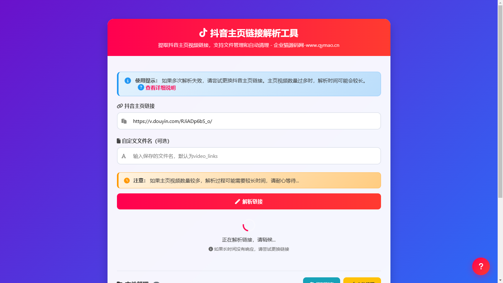 专为内容创作者设计的抖音主页视频链接解析工具,支持批量提取抖音主页所有视频链接,提供便捷的文件管理和自动清理功能。