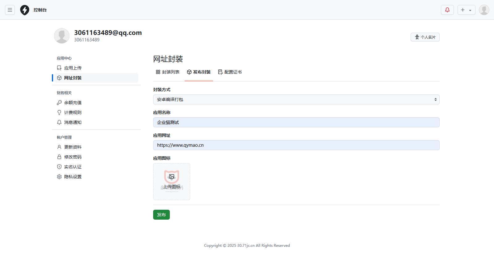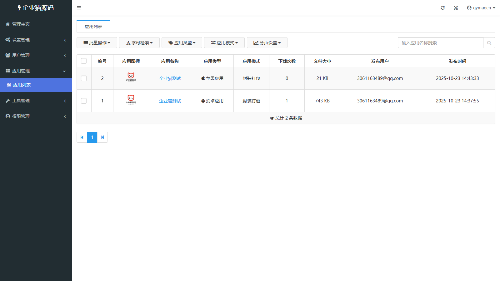 企业猫测试了下,安卓APP可正常安装,IOS可以正常封装,但企业猫没证书和苹果手机,没法继续往下测试。