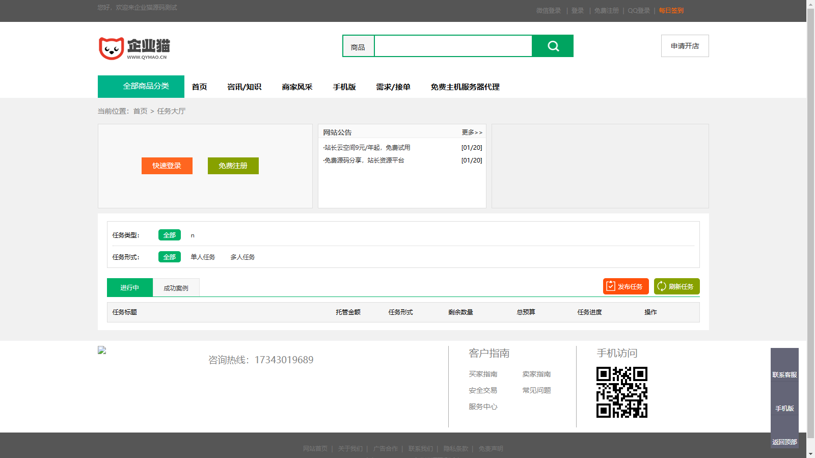 企业猫搭建了下,可以正常搭建出来,也未发现啥不能打开的页面,挺好的一源码。