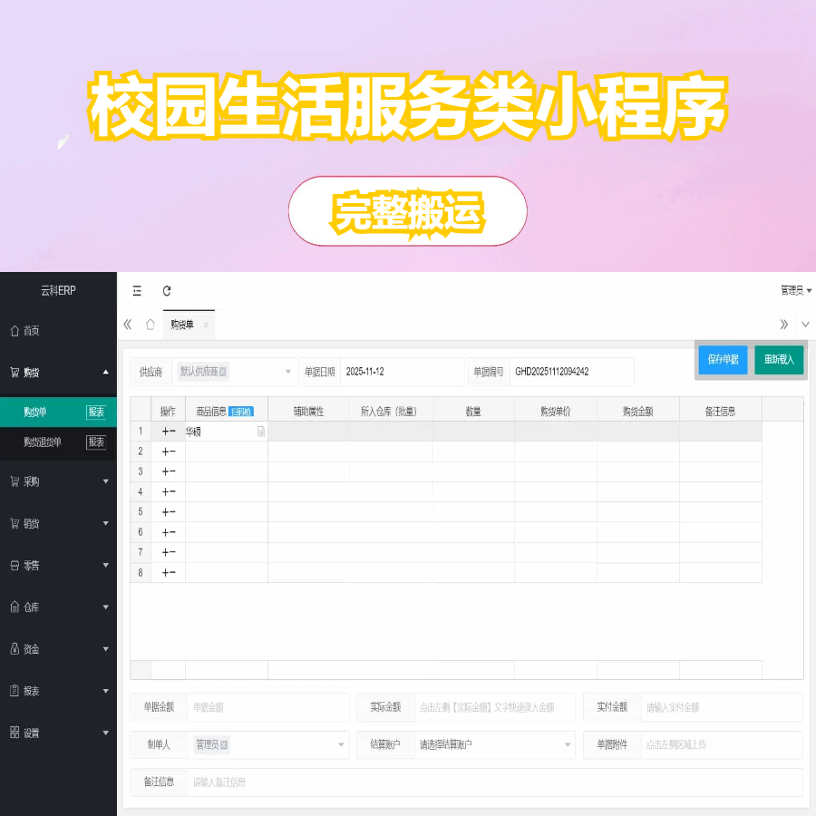 校园生活服务类小程序(含后端源码、小程序源码)。比较适合学习或毕设,商用不建议。主要功能为校园快递代取代寄、致力于解决校园内快递代取、餐食代购等日常需求,为校园师生提供便捷服务。