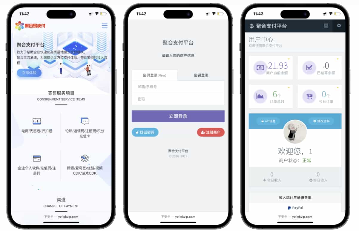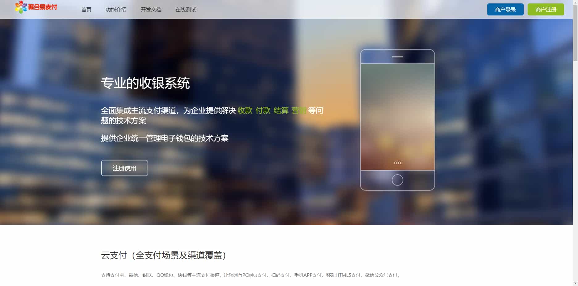支持支付宝、微信、银联、QQ 钱包等主流支付渠道,让您拥有 PC 网页支付、扫码支付、手机 APP 支付、移动 HTML5 支付、微信公众号支付等;