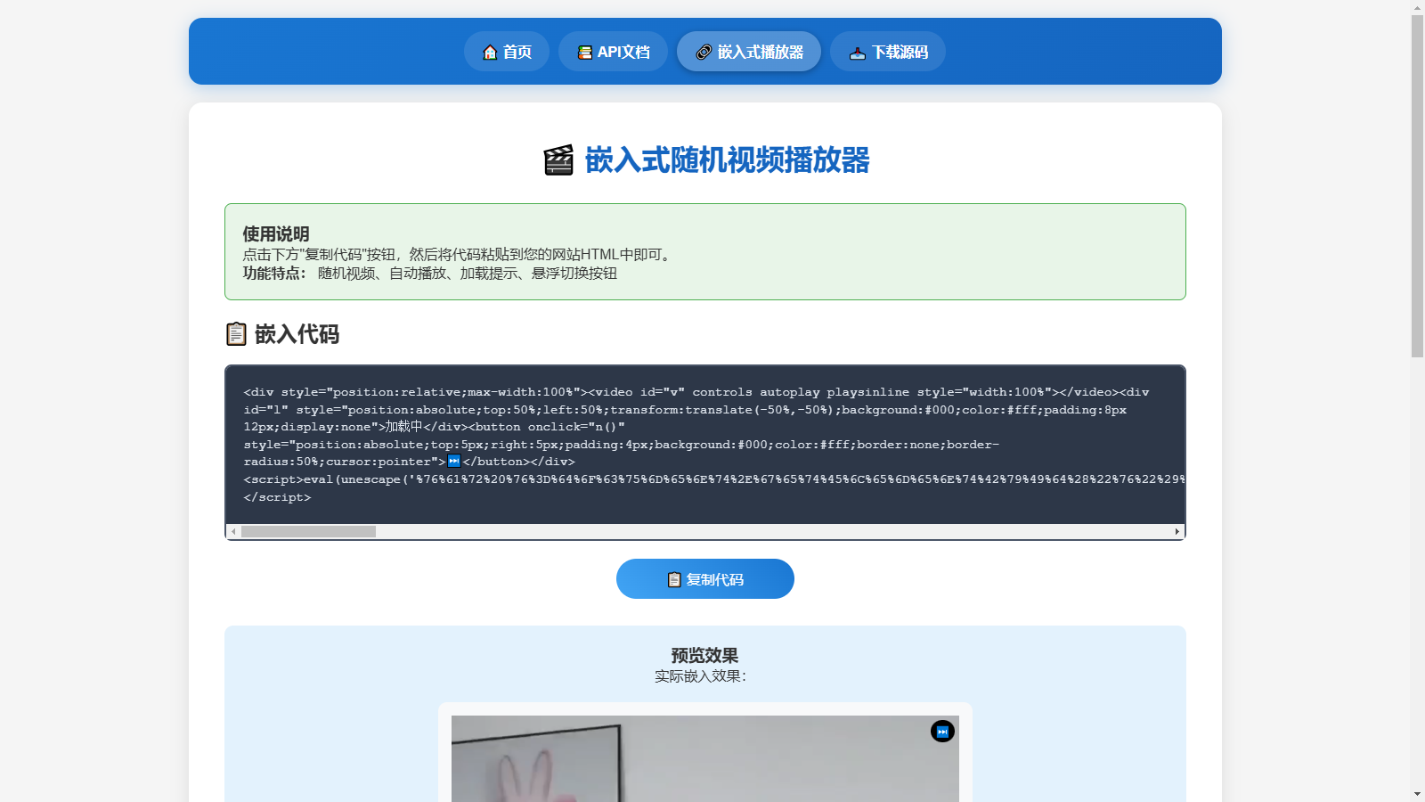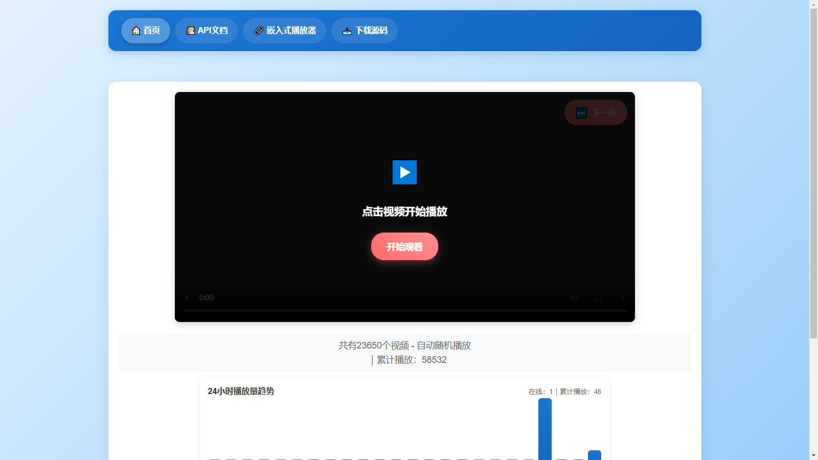 6.加入嵌入式播放代码功能,在线播放统计,在线人数等