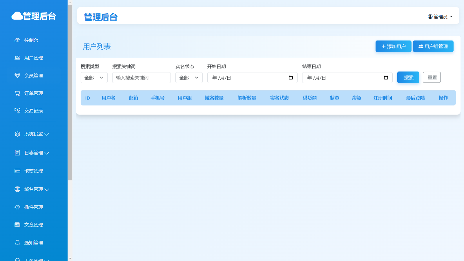 4、用户与权限:注册登录、第三方登录、分组与供应商管理。