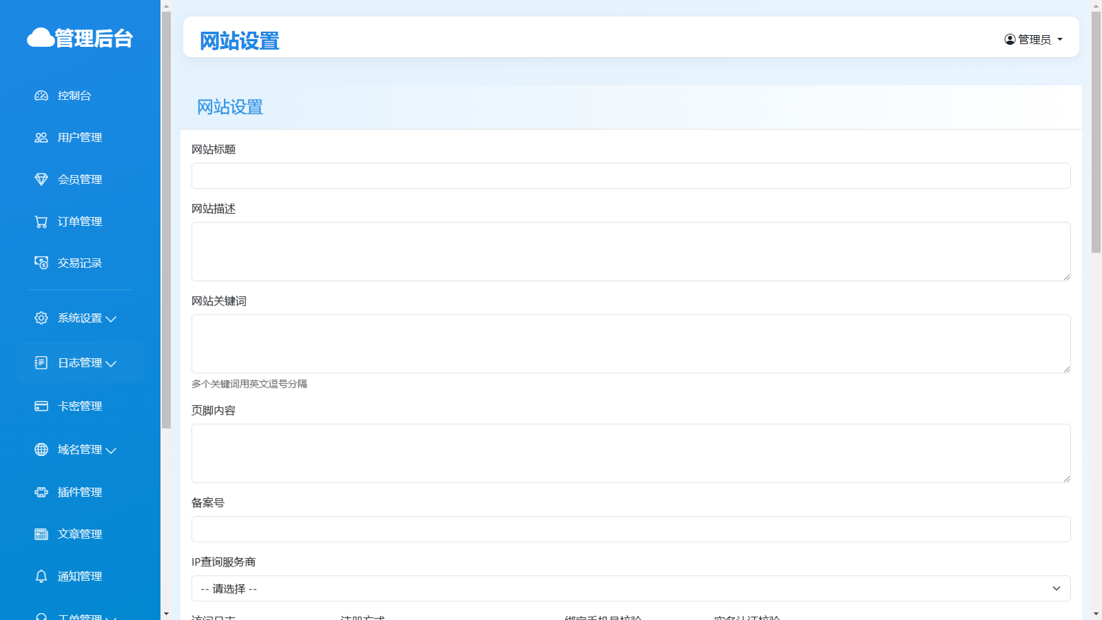 3、配置管理:站点、邮件、短信、实名认证、验证码、违规检测等一站式设置。