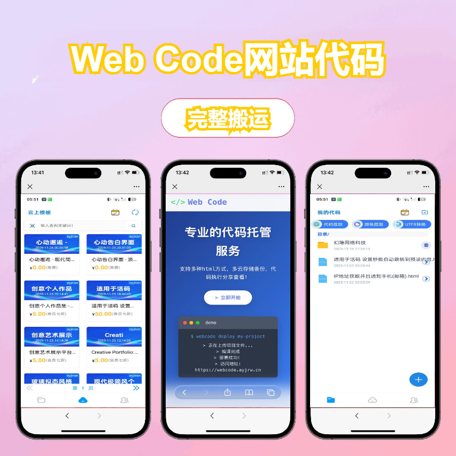 介绍:WebCode 主要功能就是输入代码不需要服务器和任何东西就可以生成制作网站网页分享,功能包括但不仅限于,登录记录足迹,云上模板可以一键导入到主页,然后进行使用二次开发模板,云上模板已经对接了大模型 (豆包,deepseek 接口) 全托管,模型自动更新!