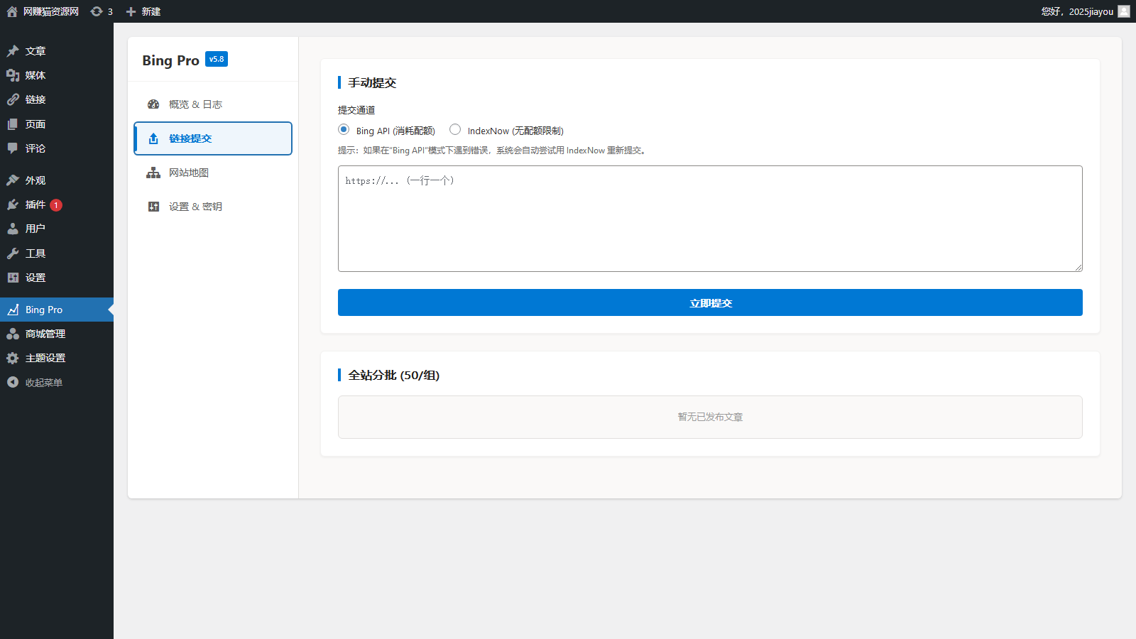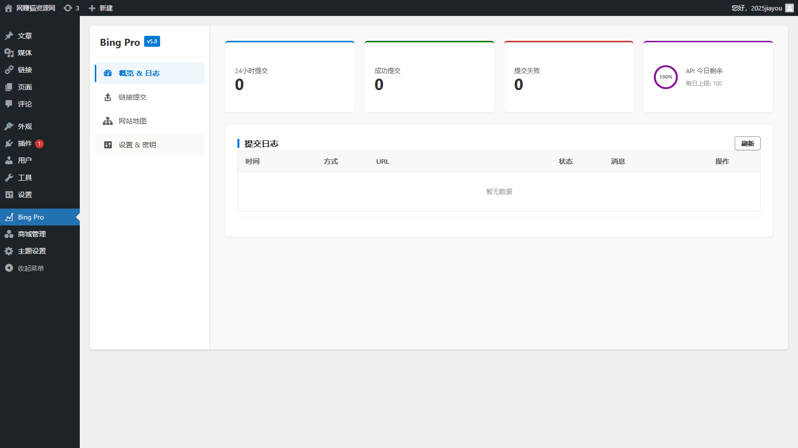 这是一款WordPress站长提交工具插件,API额度是自动刷新的,日志可能需要手动刷新,日志多了翻页可能会卡,因为基本是实时获取数据的,功能很多。