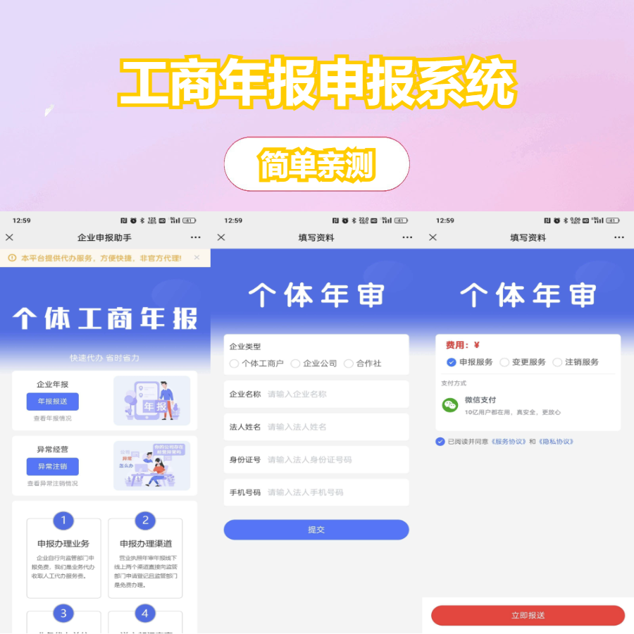 工商年报申报系统源码 个体工商户年报注销H5搭建源码