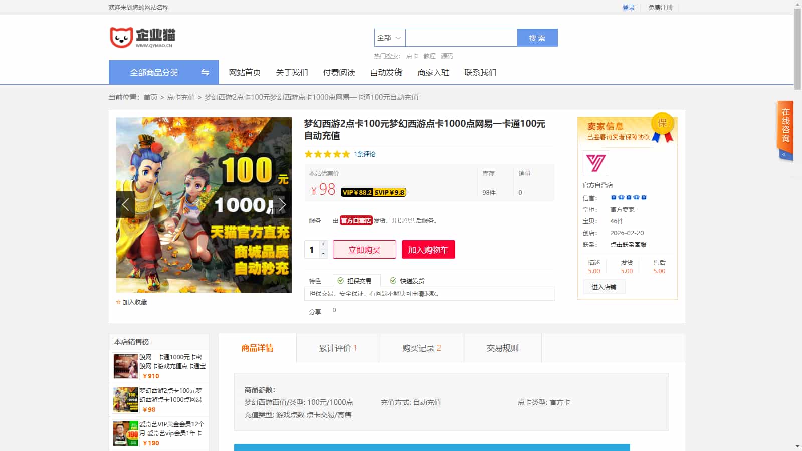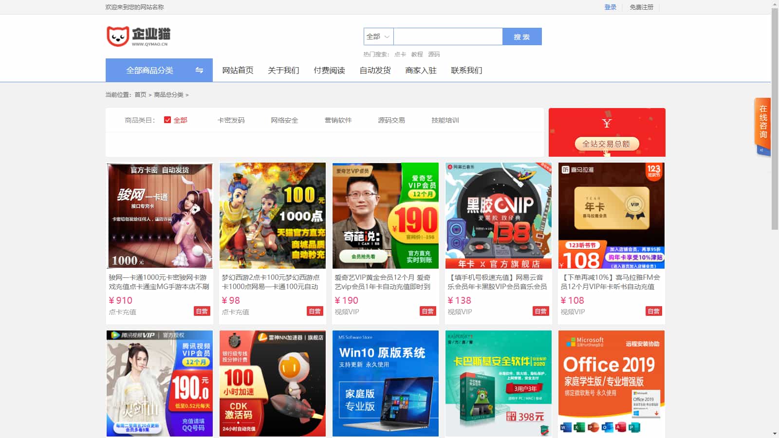 虚拟商品自动发货系统功能特点: