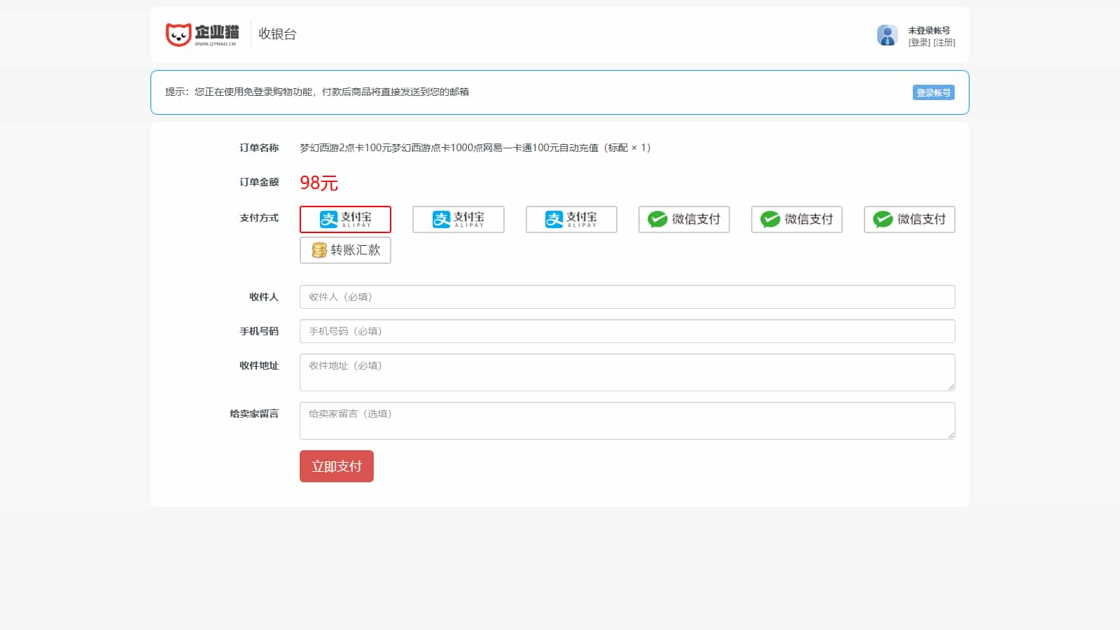 在线支付(支付宝/微信)